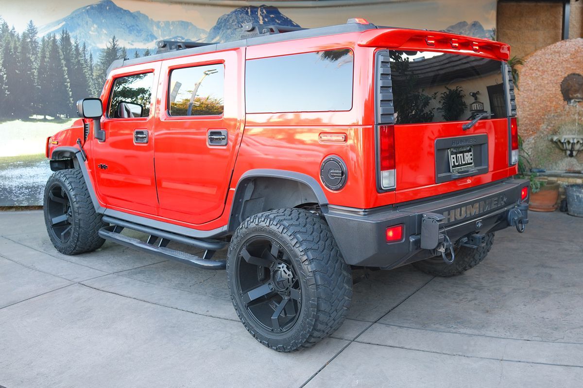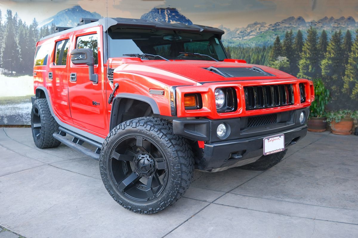 The 2008 Hummer H2 4WD 4dr SUV stands out with its striking Solar Flare Metallic exterior, an eye-catching hue that commands attention on and off the road. Inside, the vehicle offers an Ebony interior, exuding an atmosphere of luxury and comfort synonymous with the Hummer brand. Under the hood, this SUV is powered by a robust 6.2L 8-cylinder engine, delivering impressive performance that complements its rugged persona. This model includes the luxury preferred equipment group, elevating your driving experience with high-end features tailored for both comfort and style. Its advanced audio system comes equipped with AM/FM stereo, an MP3 compatible CD/DVD player, and an intuitive DVD-based navigation system, ensuring entertainment and guidance during every journey. The power tilt-sliding sunroof with express-open and a wind deflector adds an element of openness, allowing you to enjoy fresh air and sunshine at the touch of a button. Further enhancing its appeal, the Hummer H2 is fitted with a premium entertainment system, perfect for long drives and keeping passengers entertained. The polished aluminum wheels, measuring 17" x 8.5" (43.2 cm x 21.6 cm), not only enhance its bold exterior look but also contribute to a smooth and stable ride. With its four-wheel drive drivetrain, this SUV is capable of tackling diverse terrains, making it an ideal choice for those seeking adventure without compromising on comfort and style.