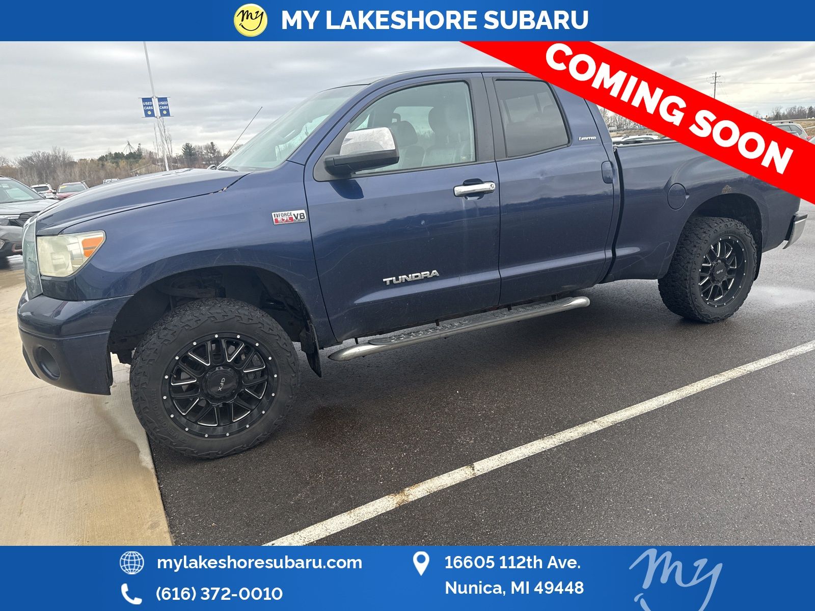 Tundra Limited, i-Force 5.7L V8 DOHC, 4WD. Nautical Blue Metallic 2008 Toyota Tundra Limited 4WD 6-Speed Automatic Electronic i-Force 5.7L V8 DOHC. My Lakeshore Subaru is your #1 choice in Michigan to get the BEST PRICE on used vehicles and BEST value for your trade. The My Lakeshore Subaru team is ready to provide you with a world-class experience, ensuring that you find the perfect vehicle that fits all your needs. Every vehicle has been through a full safety inspection completed by certified technicians and fully detailed. Recent Arrival! Odometer is 39035 miles below market average!