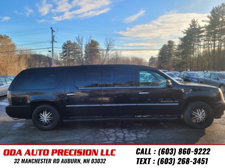 This 2009 Cadillac Escalade ESV is available at ODA Auto Precision LLC in Auburn, New Hampshire. It features a Vortec 6.2L V8 engine with E85 FlexFuel capability and is equipped with all wheel drive, air suspension, and leather seats. The vehicle is in good condition and is available for sale.
