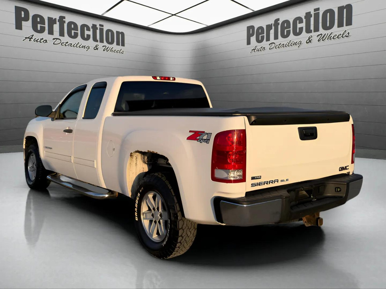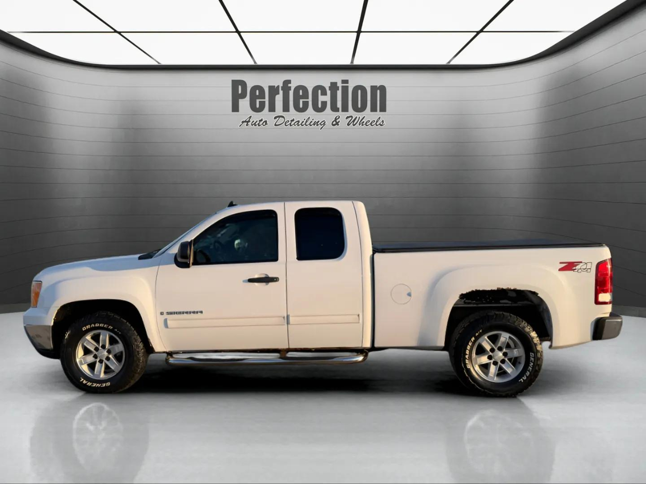 Step right up and feast your eyes on this gleaming 2009 GMC Sierra 1500! With the heart of a lion and the soul of a workhorse, this truck is ready to conquer any challenge you throw its way. Equipped with rear axle 3.42 ratio, heavy-duty suspension package, and 4WD capability, it's the epitome of strength and dependability. The interior offers comfort and convenience with its leather-wrapped steering wheel, manual lumbar control, and rear folding bench seat. The driver information center keeps you informed while the electronic cruise control takes the edge off those long drives. Safety is never an afterthought with this Sierra, featuring StabiliTrak stability control system, daytime running lamps, and dual frontal airbags with Passenger Sensing System. Plus, don't forget to ask about the available Carfax report for added peace of mind. So, whether you're hauling heavy loads or cruising around town, this GMC Sierra 1500 is the perfect blend of rugged durability and refined luxury. Get behind the wheel and experience the power and performance for yourself! Visit Perfection Auto Detailing & Wheels to shop our great deals. You can contact us or call 309-828-9090 to schedule your test drive today.