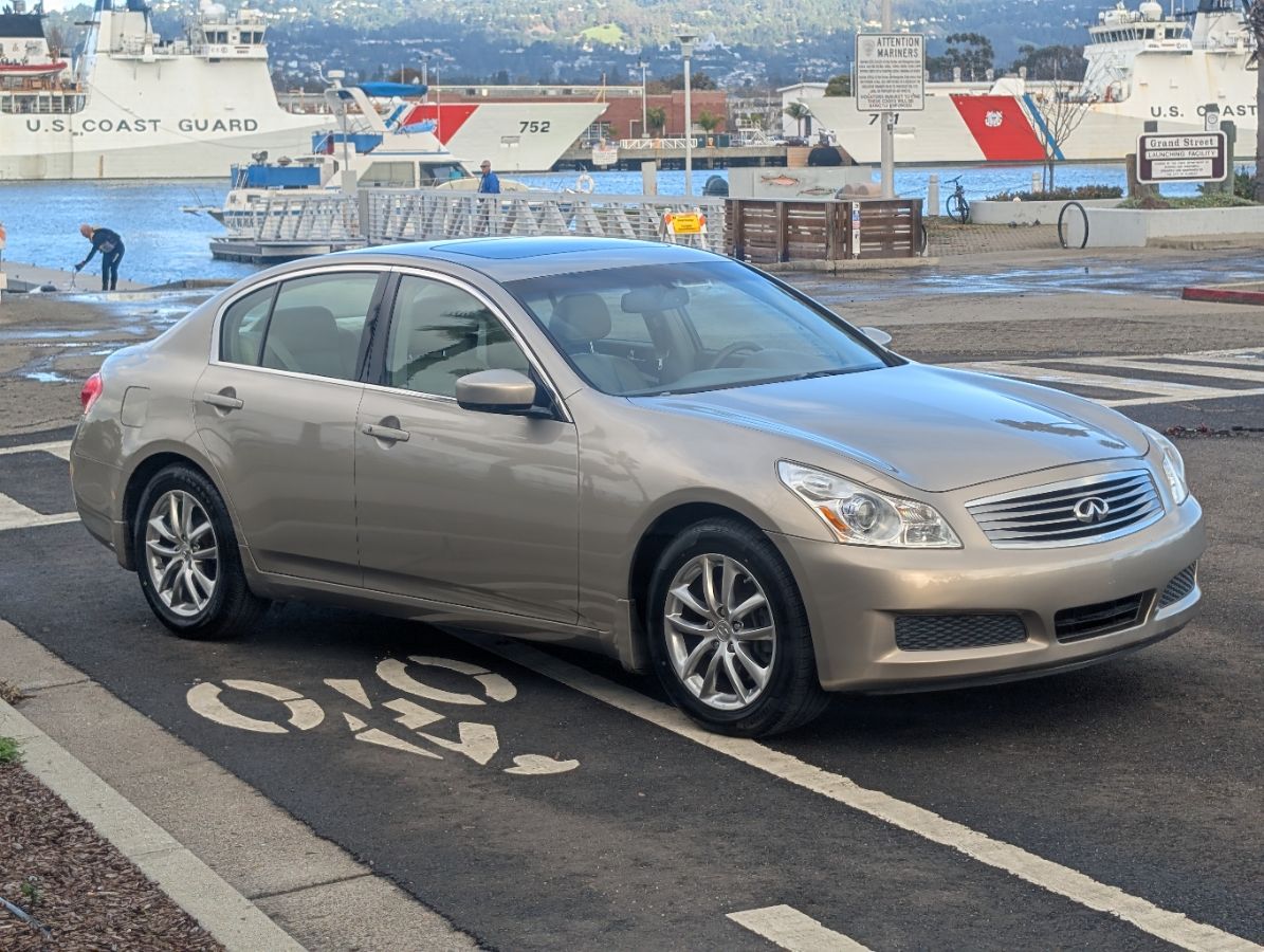 Sleek and unique, our One Owner 2009 INFINITI G37 Journey Sedan with the Premium Pack, shown in Sahara Sandstone, is more than willing to show you what it's made of! Powered by a 3.7 Liter V6 that generates 328hp paired to a responsive 7 Speed Automatic transmission for brisk acceleration. Enjoy sharp handling and nearly 26mpg on the highway from this Rear Wheel Drive sedan, that shines brightly with alloy wheels and an aggressive stance. Take a minute and visualize how good you'll look sitting behind the wheel of our G37 Journey as you appreciate the comfort of the sculpted heated leather seats and dual-zone automatic climate control. You can listen to your favorite tunes on a dynamic sound system with available satellite radio while the sun shines on your face through the spacious sunroof. Check out the full-color navigation! With INFINITI peace of mind comes standard with stability/traction control, ABS, advanced airbags, and more. With a refined interior and excellent handling, this G37 Journey is hard to beat! Save this Page and Call for Availability. We Know You Will Enjoy Your Test Drive Towards Ownership!