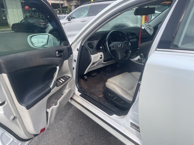 White 2009 Lexus IS 250 RWD 6-Speed Automatic Electronic with ECT-i 2.5L V6 DOHC 24V VVT-i Leather, 13 Speakers, 17" x 8" 10-Spoke Aluminum Alloy Wheels, 4-Wheel Disc Brakes, ABS brakes, Air Conditioning, Alloy wheels, AM/FM radio, Auto-dimming Rear-View mirror, Automatic temperature control, Brake assist, Bumpers: body-color, CD player, Compass, Delay-off headlights, Driver door bin, Driver vanity mirror, Dual front impact airbags, Dual front side impact airbags, Electronic Stability Control, Four wheel independent suspension, Front anti-roll bar, Front Bucket Seats, Front Center Armrest, Front dual zone A/C, Front fog lights, Front reading lights, Fully automatic headlights, Garage door transmitter: HomeLink(R), Heated door mirrors, Illuminated entry, Knee airbag, Leather Seat Trim, Leather steering wheel, Lexus Premium Audio System, Low tire pressure warning, Occupant sensing airbag, Outside temperature display, Overhead airbag, Overhead console, Panic alarm, Passenger door bin, Passenger vanity mirror, Power door mirrors, Power driver seat, Power moonroof, Power passenger seat, Power steering, Power windows, Radio data system, Rear anti-roll bar, Rear reading lights, Rear seat center armrest, Rear window defroster is not listed but it is listed as "Air Conditioning", Remote keyless entry and speed sensitive wipers are not listed but they are not listed. The sales price for this vehicle may be subject to a market increase. Contact the dealer for actual sales price.