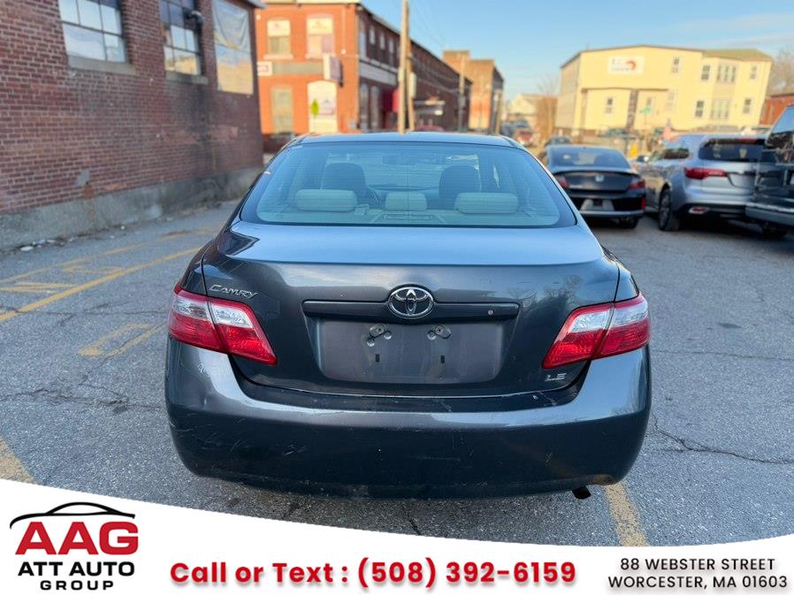 This 2009 Toyota Camry CE is available for sale in Worcester, Massachusetts at ATT MOTORS. The vehicle features a 2.4L 4-cylinder engine, automatic transmission, and a sport-tuned suspension. It is in stock and available for sale in good condition.