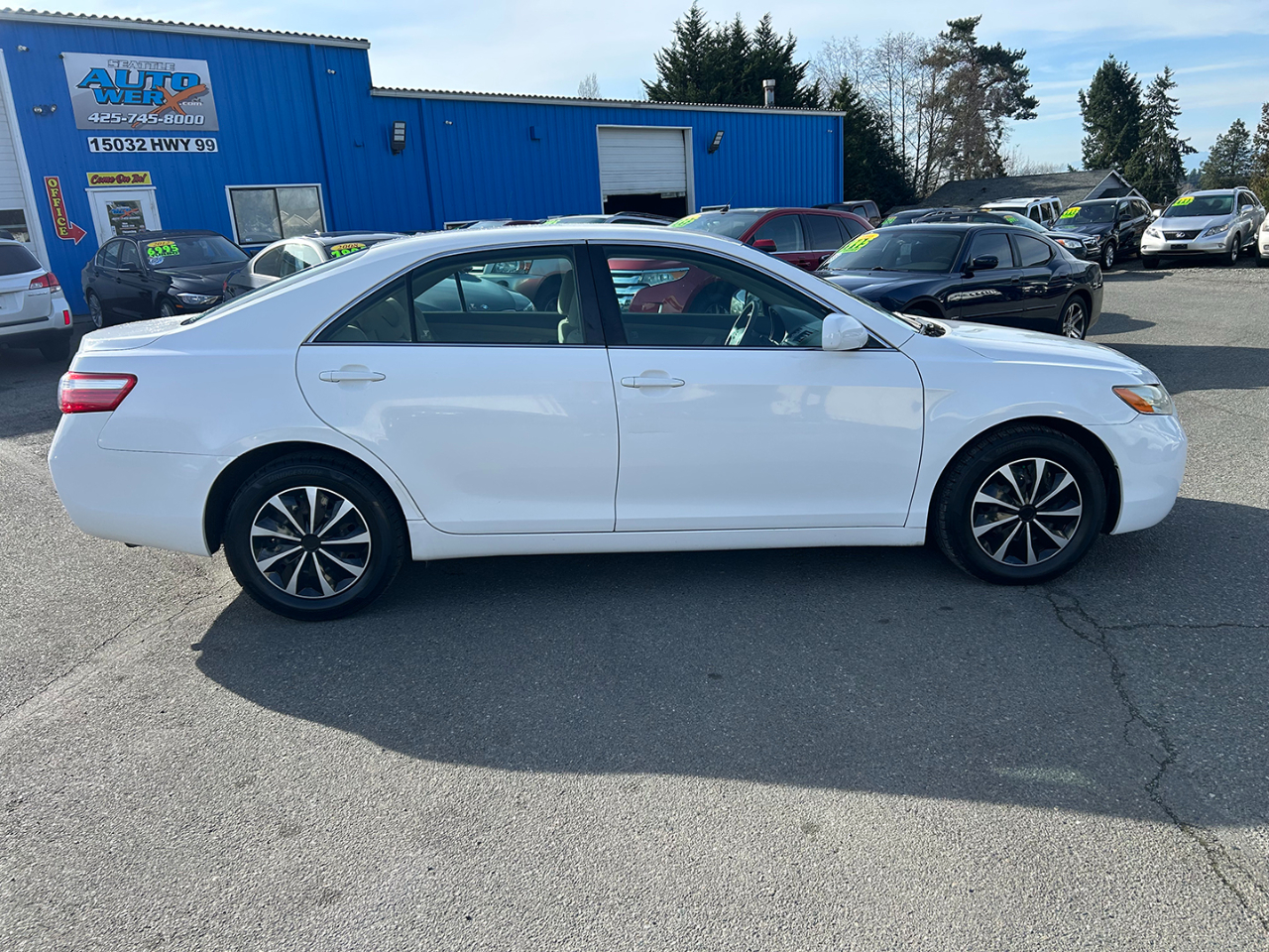 Beautiful clean title 2009 Toyota Camry LE 2.4L 4 cyl. engine, 5 speed overdrive automatic transmission with 76k miles! Gorgeous beige cloth interior, Air, power windows and locks, CD player, cruise and Tilt!!! Super clean low mile sedan! Seattle Autowerx offers the best selection of used cars and trucks under $6000 in Snohomish County. Always 35 to 40 vehicles to choose from under $6000! Our inventory gets updated daily. Call us to save $$. Great financing options available too! Visit Seattle Auto Werx online at seattleautowerx.net to see more pictures of this vehicle or call us at 425-745-8000 today to schedule your test drive.