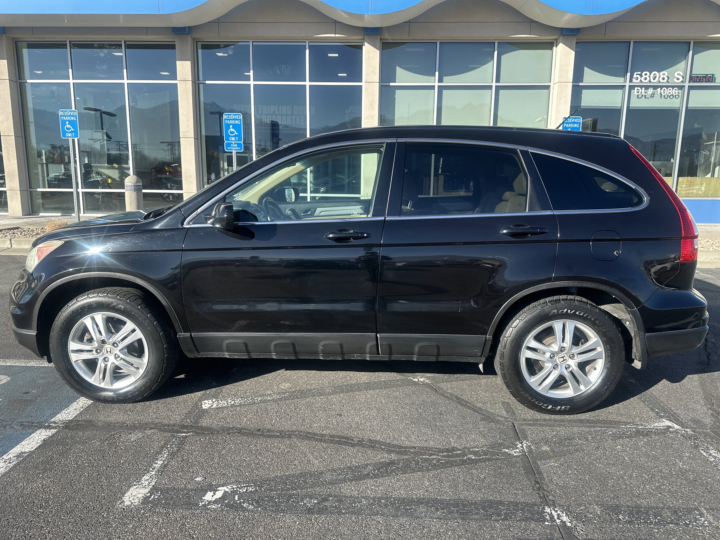 AWD. Recent Arrival! Priced below KBB Fair Purchase Price! Larry H. Miller Honda Murray offers this 2010 Black Honda CR-V EX-L AWD. It is loaded with many standard and optional features including: AWD, 4-Wheel Disc Brakes, 4.50 Axle Ratio, 7 Speakers, ABS brakes, Air Conditioning, Alloy wheels, AM/FM radio: XM, Anti-whiplash front head restraints, Automatic temperature control, Brake assist, Bumpers: body-color, CD player, Delay-off headlights, Driver door bin, Driver vanity mirror, Driver's Seat Mounted Armrest, Dual front impact airbags, Dual front side impact airbags, Electronic Stability Control, Four wheel independent suspension, Front anti-roll bar, Front Bucket Seats, Front dual zone A/C, Front reading lights, Fully automatic headlights, Heated door mirrors, Heated front seats, Heated Reclining Front Bucket Seats, Illuminated entry, Leather Seat Trim, Leather Shift Knob, Low tire pressure warning, Occupant sensing airbag, Outside temperature display, Overhead airbag, Overhead console, Panic alarm, Passenger door bin, Passenger seat mounted armrest, Passenger vanity mirror, Power door mirrors, Power driver seat, Power moonroof, Power steering, Power windows, Rear anti-roll bar, Rear seat center armrest, Rear window defroster, Rear window wiper, Remote keyless entry, Security system, Speed control, Speed-sensing steering, Speed-Sensitive Wipers, Split folding rear seat, Steering wheel mounted audio controls, Tachometer, Telescoping steering wheel, Tilt steering wheel.