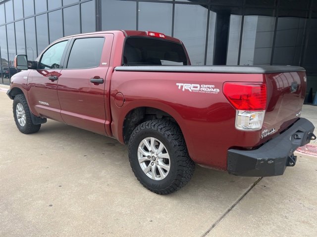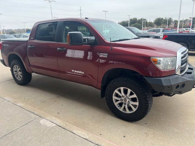 Clean CARFAX. Salsa Red 2010 Toyota Tundra Grade CrewMax 4WD 6-Speed Automatic Electronic i-Force 5.7L V8 DOHC FFV i-Force 5.7L V8 DOHC FFV, 4WD, Graphite w/Fabric Seat Trim or Fabric Seat Trim w/Off-Road Package or Fabric Seat Trim w/SR5 Package, 6 Speakers, AM/FM/CD/MP3 Audio, CD player, Front dual zone A/C, Knee airbag, Low tire pressure warning, Outside temperature display, Power door mirrors, Power steering, Power windows, Remote keyless entry, Speed-sensing steering, Tilt steering wheel. Recent Arrival!
