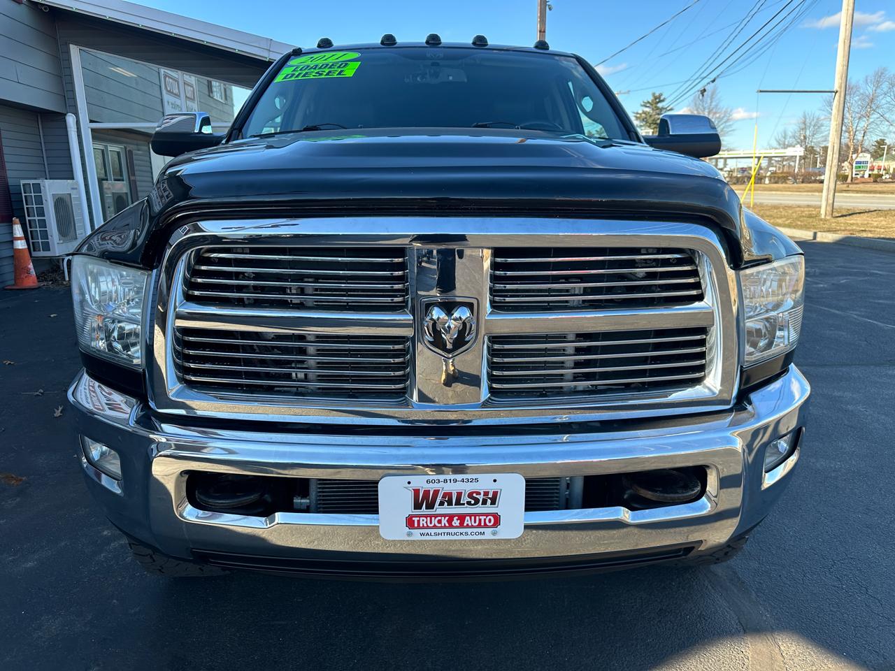 2011 Dodge Ram 3500 Laramie Mega Cab 4x4. Automatic transmission. Black exterior paint with black leather interior. Laramie trim with power windows, mirrors, door locks, heated and cooled front seats, heated steering wheel, factory towing package, power sliding rear window. 4 wheel drive switch on the dash. Power points with 110 volt outlet. Front tow hooks. Turn key and ready to go. This truck has altered emissions. Mileage is currently at 115,000. This Ram is in great condition priced at $33,500 for this 2011 Dodge Ram 3500 Mega Cab! Call or text us at 603 819 4325 with interest, questions, or to come check it out. Thank you. Be sure to check out walshtruckandauto.com located in Plaistow New Hampshire to view our updated inventory of trucks, diesels, SUVs, and cars! Visit Walsh Truck & Auto online at www.walshtruckandautos.com to see more pictures of this vehicle or call us at 603-819-4325 today to schedule your test drive.