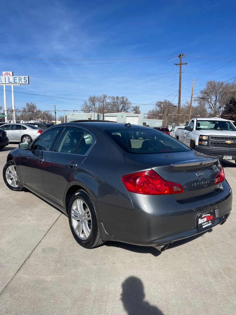 The 2011 INFINITI G25 Sedan 4dr x AWD is a remarkable embodiment of luxury and performance, striking a perfect balance for discerning drivers. Dressed in a sleek Graphite Shadow exterior, this sedan exudes a sophisticated aura, while its well-appointed Graphite interior offers a seamless blend of comfort and style. The powerful 2.5L 6-cylinder engine ensures a dynamic driving experience, expertly complemented by the confidence-inspiring All Wheel Drive drivetrain. Enhancing the appeal and functionality of this premium sedan are several thoughtful features. The moonroof package invites natural light into the cabin, adding to the vehicle's upscale ambiance. Practicality is prioritized with the inclusion of the carpeted trunk mat, trunk net, and first aid kit, ensuring you are well-prepared for any journey. Added exterior accessories like the splash guards not only protect the vehicle's paint but also contribute to its sleek aesthetic design. Being equipped with the 50 state emissions makes this G25 Sedan compliant and adaptable across the entire United States. Altogether, this INFINITI model stands as a testament to excellent craftsmanship and meticulous attention to detail, promising a luxurious driving experience for any car enthusiast.