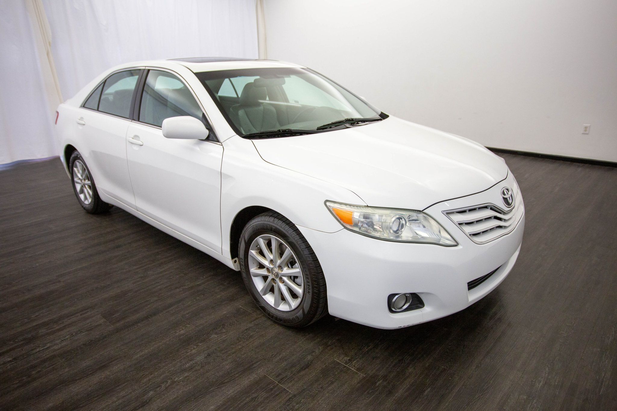 2011 Toyota Camry XLE finished in classic Super White, this 2011 Toyota Camry XLE delivers a perfect balance of comfort, reliability, and timeless style. Powered by the dependable 2.5L I4 engine paired with a smooth 6-speed automatic transmission, it offers a refined driving experience with excellent efficiency, making it ideal for daily commuting or long-distance travel. The Ash leather interior creates a clean and welcoming cabin enhanced by the XLE Value Package, featuring heated front seats, integrated armrests, and leather door trim that elevate the overall comfort and premium feel. A power moonroof brings in natural light, while dual-zone automatic climate control ensures personalized comfort for both driver and passengers. The touchscreen radio paired with Kicker audio delivers crisp, immersive sound, adding enjoyment to every drive. Riding on stylish 16" alloy wheels, this Camry blends practicality with a touch of sophistication, offering the legendary durability Toyota is known for along with upscale features that make every trip more enjoyable. Reliable, comfortable, and well equipped, this Camry XLE is a smart choice for drivers seeking quality and value.