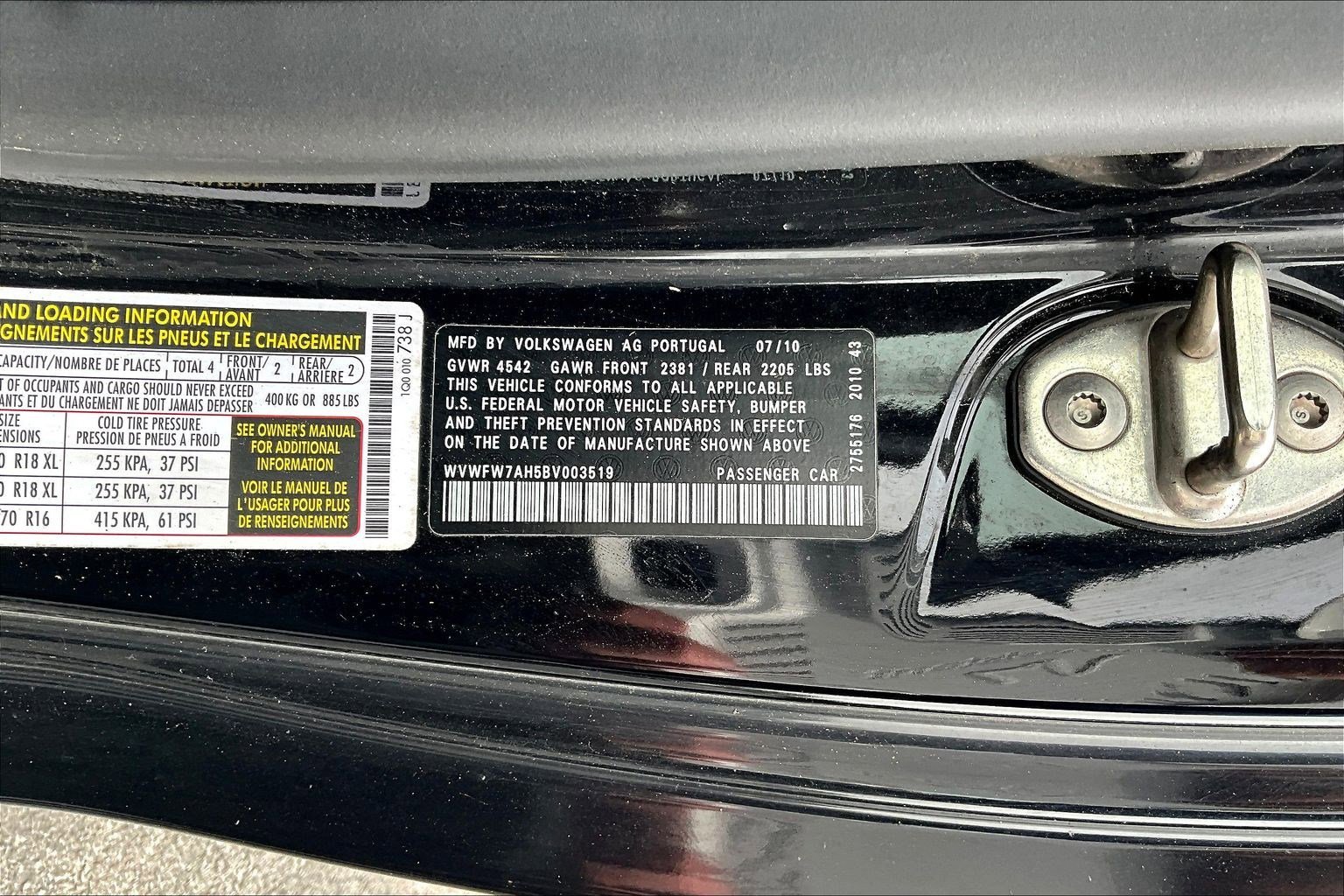 VIN: WVWFW7AH5BV003519