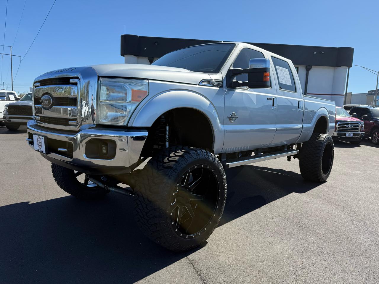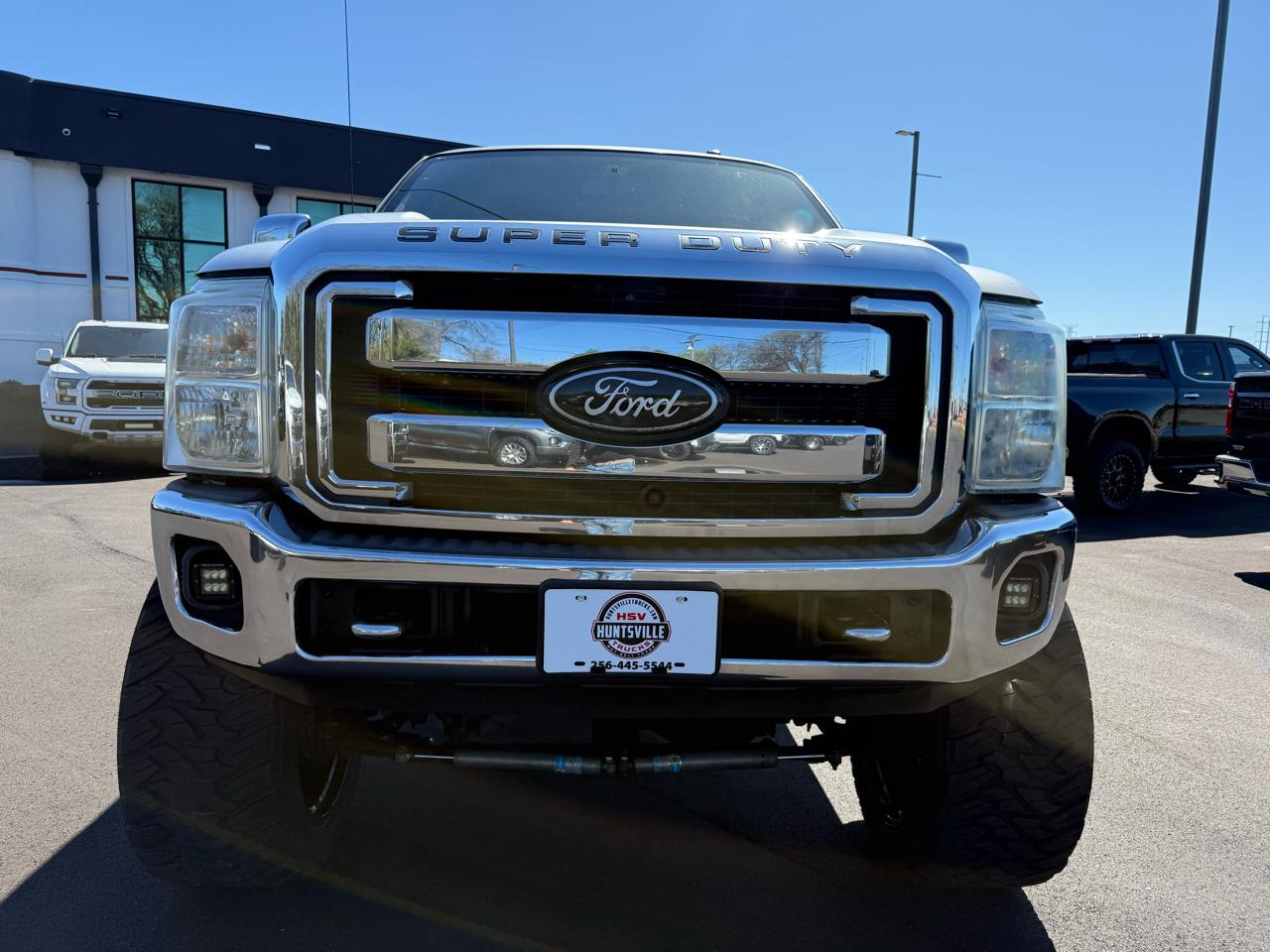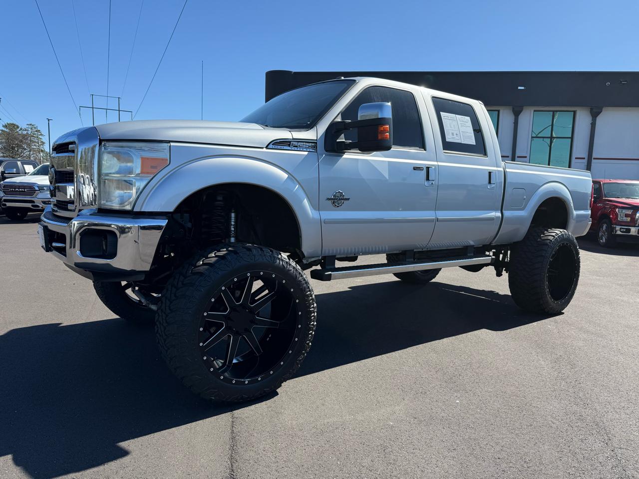 Buckle up and get ready to hit the road in this sleek one of a kind Monster Ttruck! This awesome Silver 2012 Ford Super Duty F-250 Lariat features a 10'' lift, 26X14 wheels, brand new 40X15.50X26 tires, fully deleted and tuned 6.7L Powerstroke turbo diesel! This beast of a truck is packed with power and performance, thanks to its 3.73 axle ratio and 4-wheel drive capability. The Stationary Elevated Engine Idle Control ensures smooth and efficient operation, while the Trailer Tow Package lets you haul with ease. Inside, you'll find a spacious cabin with convenient features like the Tilt/Telescoping Steering Column and Overhead Console for storage. Safety is a top priority with the Power 4-Wheel Disc Anti-Lock Braking System and SOS Post Crash Alert System. Whether you're cruising down the highway or tackling tough terrains, this Ford Super Duty is up for the challenge. Don't forget, a Carfax report is available for added peace of mind. So, what are you waiting for? Come test drive this impressive truck today and experience the power and reliability of a Ford Super Duty for yourself! Visit Huntsville Trucks to shop our great deals. You can contact us or call 256-445-5544 to schedule your test drive today.