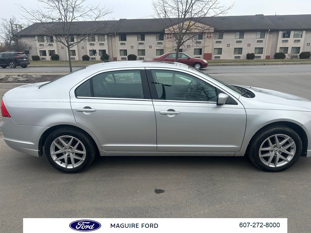 Maguire Ford Lincoln has served drivers throughout the region for decades. We stand behind up-front pricing with no haggling or hidden fees, so you always know you're getting a fair deal from the start and guarantee the lowest price in New York State!! This 2012 Ford Fusion SEL is a standout choice for the discerning driver. Boasting a sleek silver exterior and a well-appointed interior, this Fusion is packed with premium features that elevate the driving experience. This Fusion's impressive performance is matched by its exceptional fuel efficiency, delivering an EPA-estimated 23 city/33 highway MPG. The 2.5L I4 engine and 6-speed automatic transmission provide a smooth, responsive driving experience, whether navigating city streets or cruising the open road. Inside, the Fusion SEL offers a wealth of premium amenities, including a moonroof, Blind Spot Information System (BLIS) with cross-traffic alert, a rearview camera, and a premium Sony audio system with surround sound. Heated front seats and a power-adjustable passenger seat ensure maximum comfort for both driver and passengers. This 2012 Ford Fusion SEL is a true standout in its class, combining style, performance, and technology in a well-equipped package. With its impressive list of features and exceptional condition, this Fusion is an exceptional value that deserves your attention. We encourage you to schedule a test drive and experience the difference for yourself. We're confident you'll be impressed by the quality and craftsmanship of this remarkable vehicle.