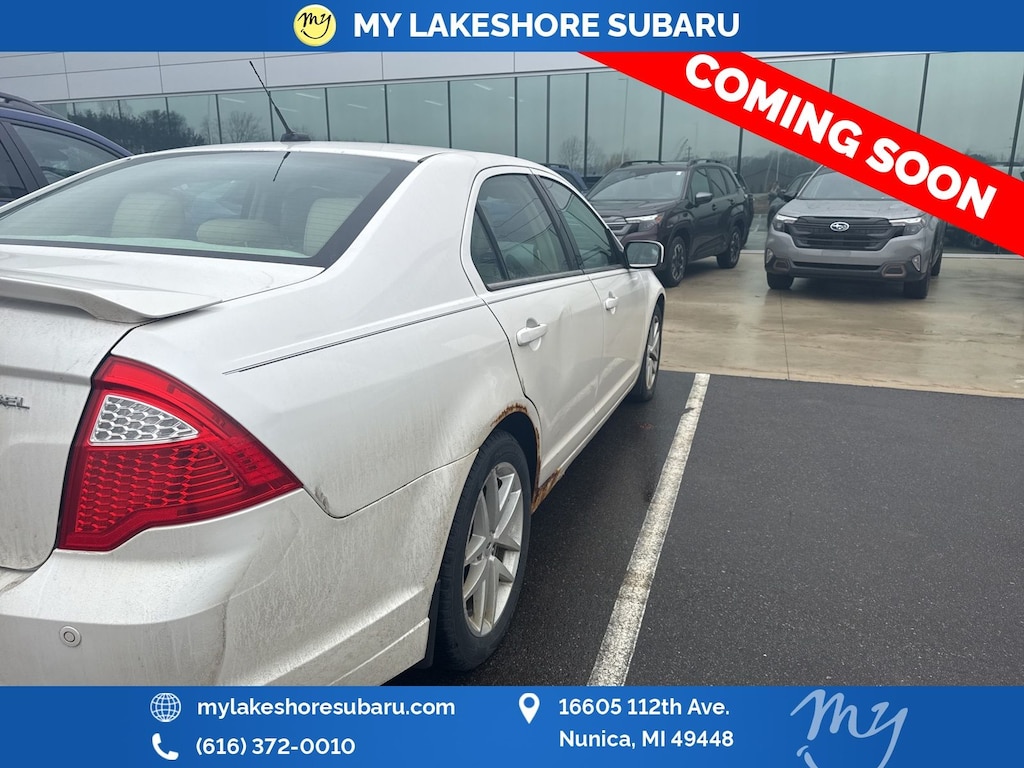Fusion SEL, White Platinum Metallic Tri-Coat, Blind Spot Monitoring, Leather Heated Power Seats, Local Trade, Moonroof, Premium Sound, BLIS Blind Spot Information System, Driver's Vision Package, Moon & Tune Package, Moonroof, Order Code 302A, Radio: Sony Audio System w/Single-CD/MP3-Capable, Rain Sensing Wipers, Rear-View Camera, Reverse Sensing System. White Platinum Metallic Tri-Coat 2012 Ford Fusion SEL FWD 6-Speed Automatic 2.5L I4. My Lakeshore Subaru is your #1 choice in Michigan to get the best price on used vehicles and best value for your trade. The My Lakeshore Subaru team is ready to provide you with a world-class experience, ensuring that you find the perfect vehicle that fits all your needs. Every vehicle has been through a full safety inspection completed by certified technicians and fully detailed. We sell many makes and models, Certified Pre-owned Subarus and Pre-owned Vehicles with years from 2025-2024-2023-2022-2021-2020-2019-2018-2017-2016-2015-2014-2013-2012-2011-2010-2009-2008-2007 and all makes Audi, BMW, Chevrolet, Toyota, Volkswagen, Kia, Hyundai, Mazda, Mercedes, Dodge, Chrysler, Jeep, Ram, Lincoln, Honda, Subaru, and many models like Crosstrek, Outback, Forester, Accent, Legacy, WRX, BRZ, Solterra, and more. Take advantage of our VIP experience by calling 231-867-6957 to schedule a test drive. Read our customer reviews and view our entire selection of preowned vehicles at www.mylakeshoresubaru.com, or stop by today, located at 16605 112th Ave, Nunica (MI 49448).