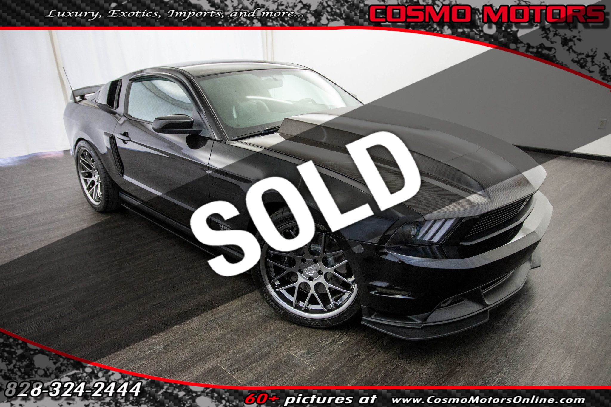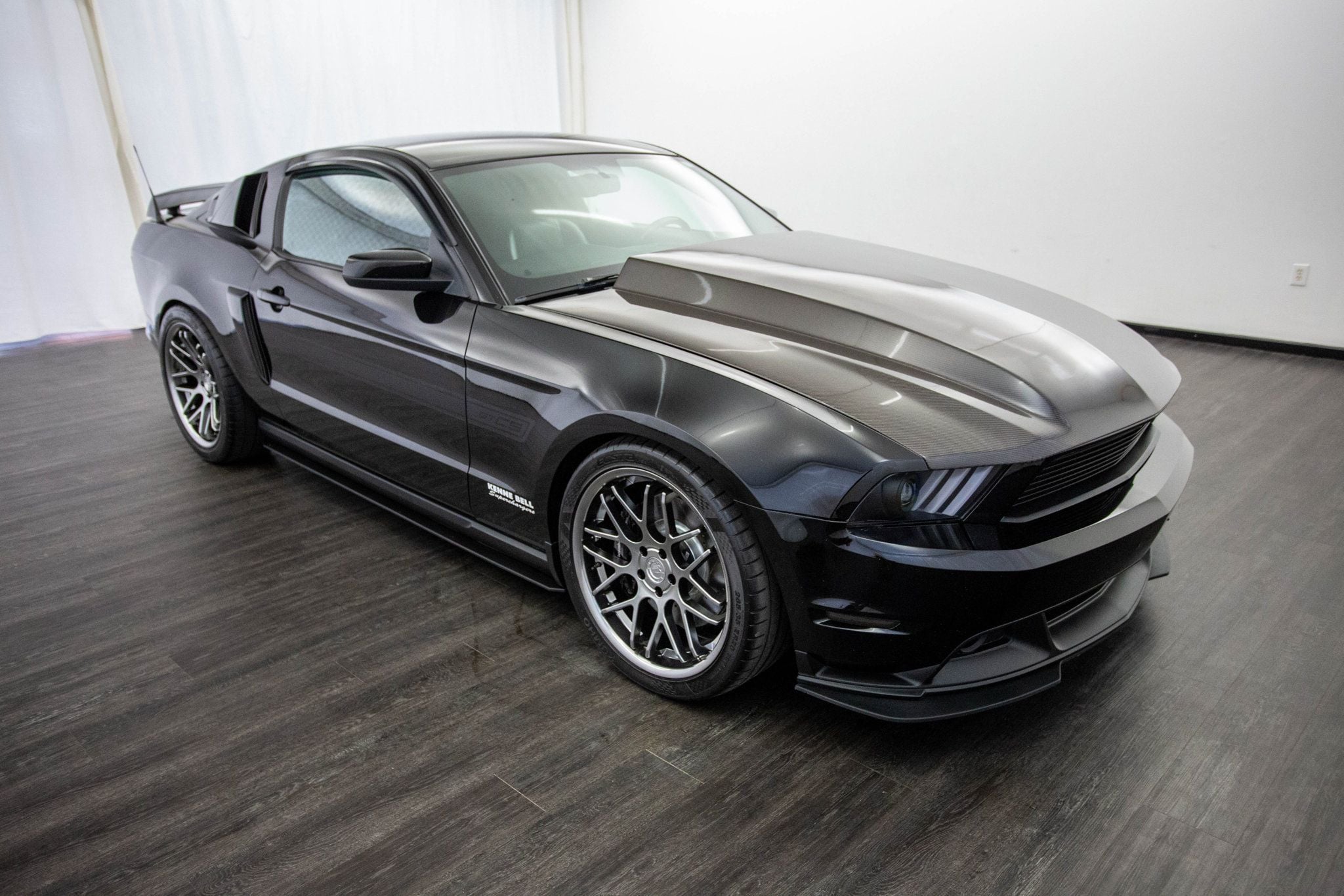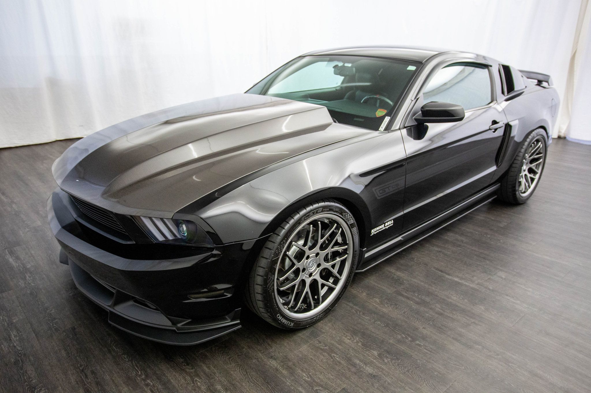 2012 Ford Mustang GT California Special. Tuned by Hypermotive Motorsports in Fayetteville and producing an impressive 534 wheel horsepower, this 2012 Ford Mustang GT California Special is a serious performance build wrapped in unmistakable Mustang style. Finished in sleek Black over a Charcoal Black leather interior with carbon accents, it blends aggressive performance with a sharp, modern look. Under the Anderson Composite Carbon Fiber hood, a supercharged V8 paired to a 6-speed manual transmission delivers brutal acceleration, driven by a Kenne Bell 2.8 Mammoth supercharger supported by a Kenne Bell Boost-A-Pump and Injector Dynamics 1050 injectors. Performance upgrades continue throughout the build with Steeda suspension sharpening handling, while Kooks long tube headers and a MagnaFlow exhaust create a deep, aggressive soundtrack that matches its power. Brembo brakes provide confident stopping performance, and upgraded S550-style headlights along with a 2013-2014 rear bumper and taillight conversion give the car a more modern, aggressive appearance. Inside, the cabin retains Mustang comfort and style with Shaker audio and carbon-accented leather, while the exterior stance is completed by aftermarket ZR alloy wheels wrapped in Kumho tires. Purpose-built, tastefully modified, and producing serious power, this California Special is a standout Mustang that delivers both visual impact and thrilling performance.