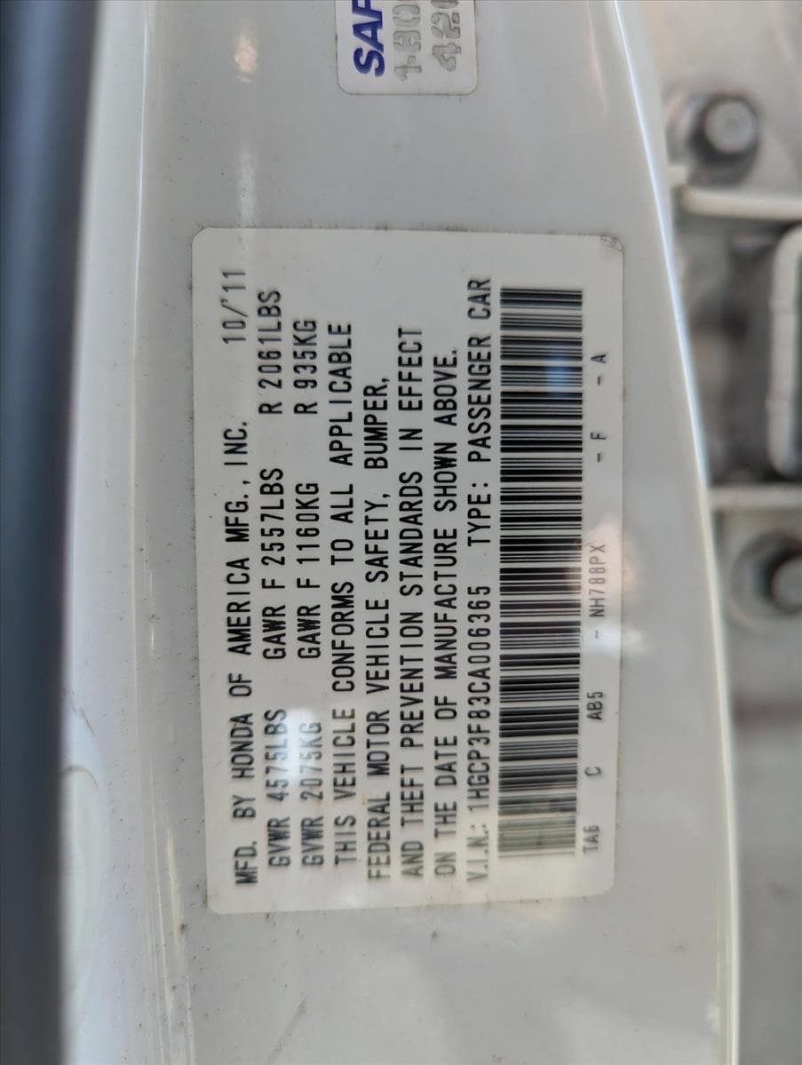 VIN: 1HGCP3F83CA006365