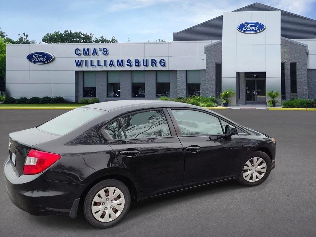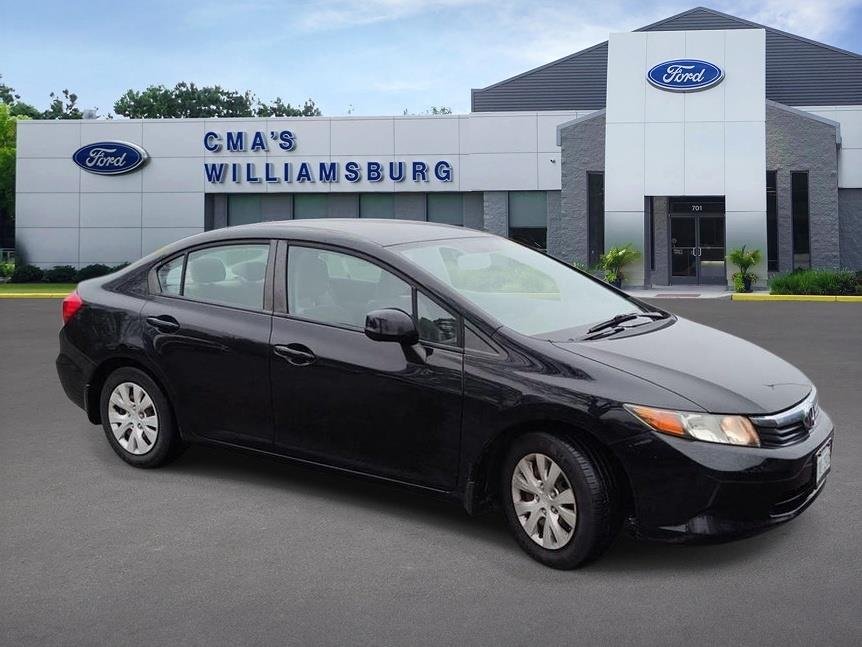 Thank you for choosing CMA's Williamsburg Ford, this Crystal Black Pearl 2012 Honda Civic Sdn LX is a great choice and is priced at only $9,880! Check out the following: City 28/ Hwy 39. Variable valve timing - Change your output. There are a lot of variables in your drive, so why should your engine always operate the same? With variable valve timing, the engine is efficient at both low and high RPM's, so you get better fuel efficiency, cleaner emissions and improved performance. Variable valve timing provides a better drive, every time. Inline-4 engines produce adequate horsepower while typically offering better fuel efficiency and more economical maintenance than larger engines. Ignition immobilizer - Theft is a non-starter. You can feel more secure about your vehicle being there when you come back. Ignition immobilizer is a passive security system consisting of a transmitter in the ignition key and a sensor located in the vehicle. If both are not present or do not recognize each other, the vehicle will not start. Ignition immobilizer a sure-fire way to prevent the theft of your vehicle. All prices plus tax, license, and title fees. To be sure you don't miss out, give us a call and schedule a test drive. We are located at 701 East Rochambeau Drive Williamsburg VA 23188. We look forward to seeing you soon!