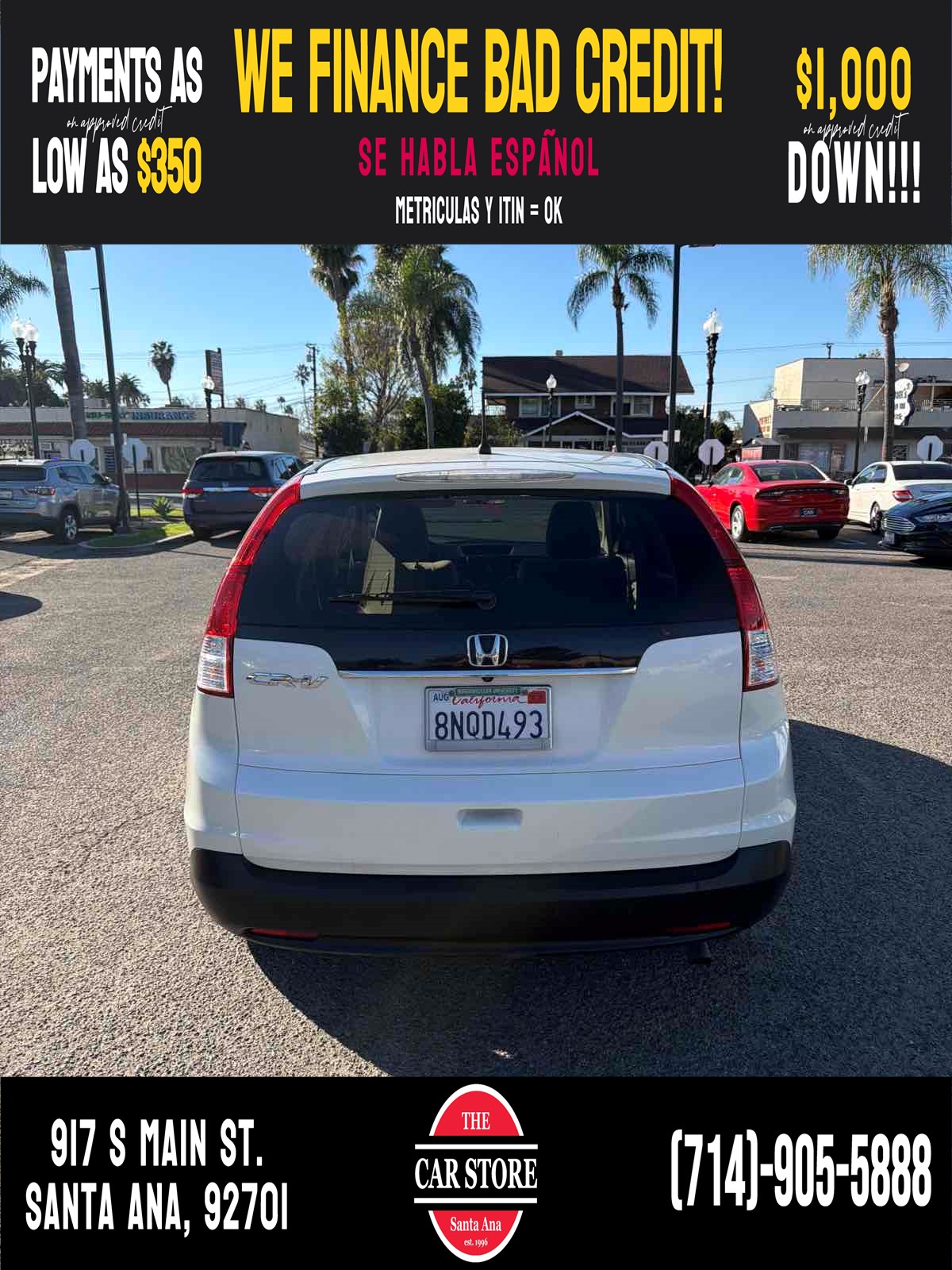 Easy Car Financing – All Credit Types Welcome! No credit needed, bad credit okay, ITINs / Matriculas okay. We can get you approved! Drive off the same day! Fast pre-approvals and flexible terms. Bilingual staff available. Visit us in Santa Ana, CA.