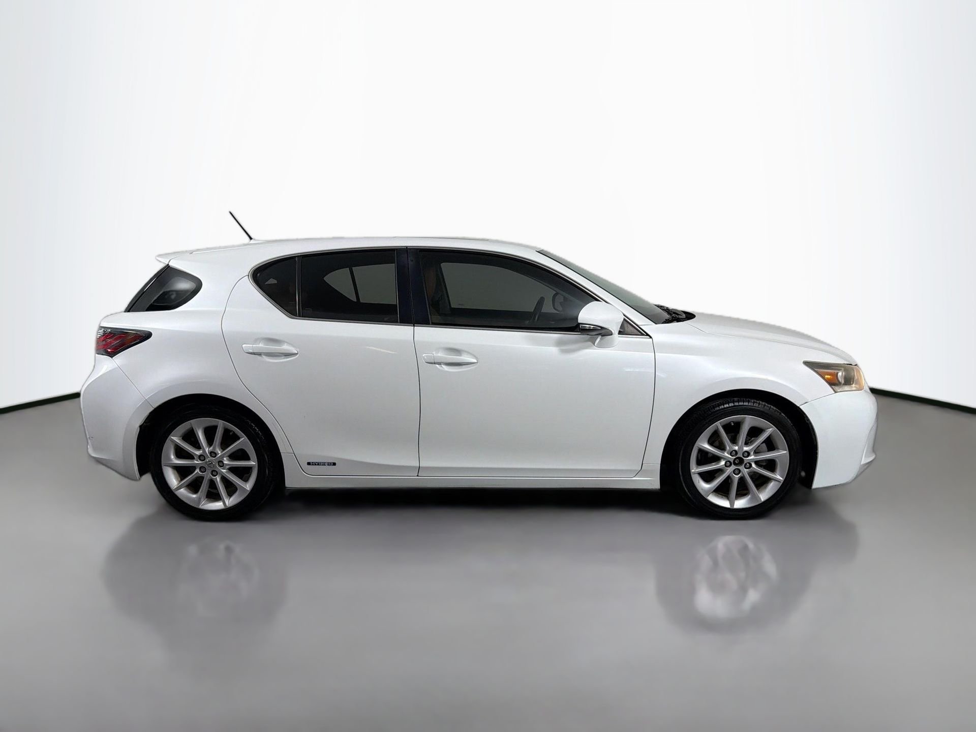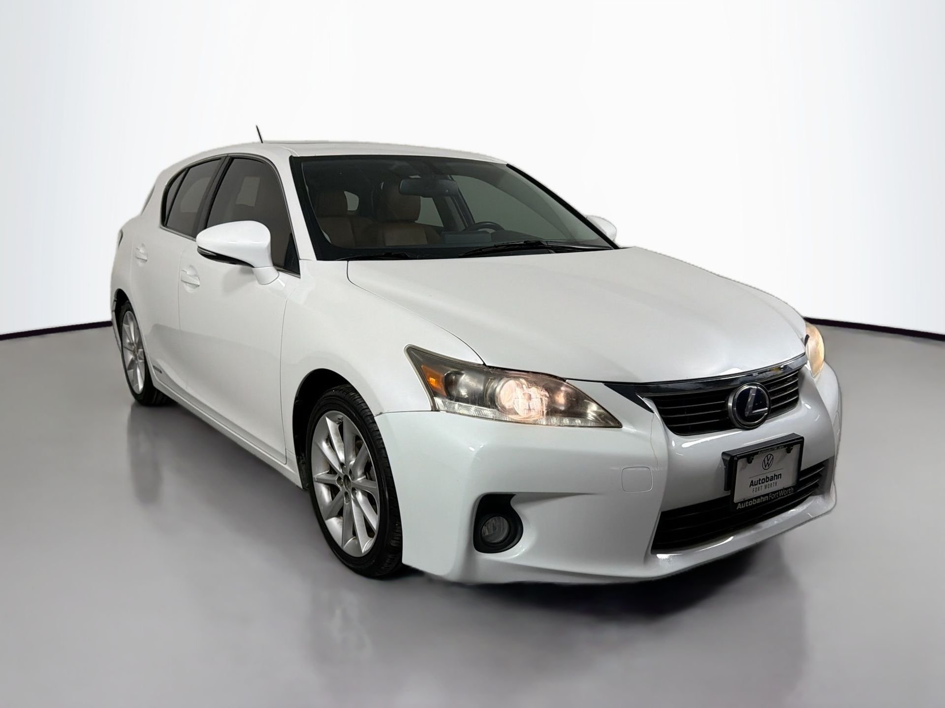 2012 Lexus CT 200h Starfire Pearl. This 2012 Lexus CT 200h in Starfire Pearl comes with the following features: 1.8L 4-Cylinder DOHC 16V VVT-i Continuously Variable (ECVT) FWD 1.8L 4-Cylinder DOHC 16V VVT-i and Continuously Variable (ECVT) 1.8L 4-Cylinder DOHC 16V VVT-i, Continuously Variable (ECVT), 17 x 7.0 Aluminum Wheels, 4-Wheel Disc Brakes, 6 Speakers, ABS brakes, Air Conditioning, Alloy wheels, AM/FM radio: SiriusXM, AM/FM/CD Player w/MP3/WMA Capability, Anti-whiplash front head restraints, Automatic temperature control, Brake assist, Bumpers: body-color, CD player, Delay-off headlights, Driver door bin, Driver vanity mirror, Dual front impact airbags, Dual front side impact airbags, Electronic Stability Control, Emergency communication system: Safety Connect, Four wheel independent suspension, Front anti-roll bar, Front Bucket Seats, Front Center Armrest, Front dual zone A/C, Front fog lights, Front reading lights, Heated door mirrors, Illuminated entry, Knee airbag, Low tire pressure warning, NuLuxe Seat Material, Occupant sensing airbag, Outside temperature display, Overhead airbag, Overhead console, Panic alarm, Passenger door bin, Passenger vanity mirror, Power door mirrors, Power driver seat, Power steering, Power windows, Radio data system, Rear anti-roll bar, Rear side impact airbag, Rear window defroster, Rear window wiper, Remote keyless entry, Security system, Speed control, Speed-sensing steering, Split folding rear seat, Spoiler, Steering wheel mounted audio controls, Tachometer, Telescoping steering wheel, Tilt steering wheel, Traction control, Trip computer, Turn signal indicator mirrors, and Variably intermittent wipers.