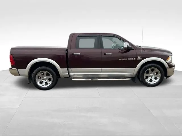 Used 2012 Ram 1500 Laramie for sale in Ottumwa, IA. Looking for a versatile pickup truck that combines rugged capability with refined comfort? This 2012 Ram 1500 Laramie is a standout choice, finished in a striking Deep Molten Red Pearlcoat exterior that commands attention. With just over 126,000 miles, this used Ram offers a robust 5.7-liter V8 engine delivering 390 horsepower and 407 lb-ft of torque, ensuring you have plenty of power for towing, hauling, or conquering tough terrain. Its 6-speed automatic transmission pairs seamlessly with the 4WD system, providing confident performance in various conditions. Inside, you'll enjoy a luxurious gray interior with leather seats, heated for added comfort, along with memory seats that remember your preferred position. Modern technology features include a backup camera for easy parking, Bluetooth connectivity for hands-free calls, and fog lights that enhance visibility. The spacious four-door cabin comfortably seats six, while amenities like navigation, premium audio with satellite radio readiness, and a powerful 506-watt sound system with a subwoofer elevate your driving experience. This Ram 1500 is equipped with a tow package, making it an excellent choice for hauling trailers, boats, or equipment. Its gasoline engine offers an EPA-rated 13 mpg city and 19 mpg highway, balancing power with efficiency. Whether you're on the job site or heading out for an adventure, this truck delivers both capability and comfort, making it a reliable partner on and off the road.