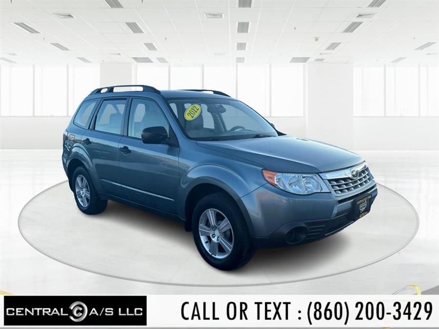 2012 Subaru Forester 4dr Auto 2.5X, available for sale in East Windsor, Connecticut. Marine Blue Pearl exterior with Platinum interior. 2.5L DOHC MPFI 16-valve 4-cylinder boxer engine and 4-speed electronic direct-control automatic transmission. All wheel drive. Actual mileage will vary with options, driving conditions, driving habits, and vehicle's condition.