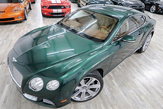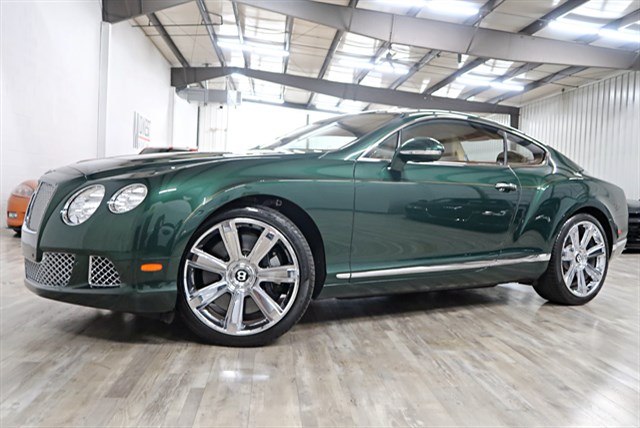 2013 Bentley Continental GT Coupe with a clean Carfax and only 15K miles. Features a 6.0L Twin Turbo W12 engine and 8-speed automatic transmission. Includes self-leveling air suspension, Mulliner interior cross stitching, and a rear view camera.