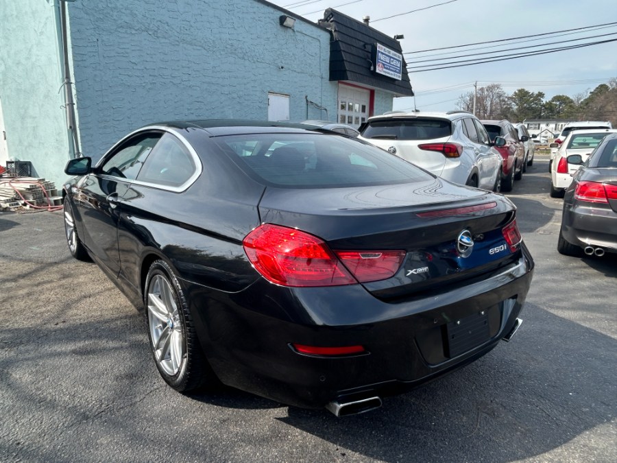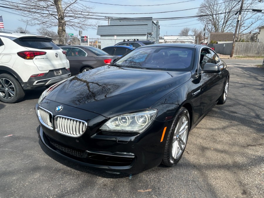 This 2013 BMW 6 Series 2dr Cpe 650i xDrive is available for sale in West Babylon, New York. It features a 4.4-liter TwinPower Turbo V-8 engine with two turbochargers and high-precision direct injection, delivering 445 horsepower. The vehicle is equipped with all wheel drive and a sport automatic transmission. The interior is finished in Nappa leather with sun-reflective technology, and the exterior is black with black accents. This car offers a blend of luxury, performance, and advanced technology.