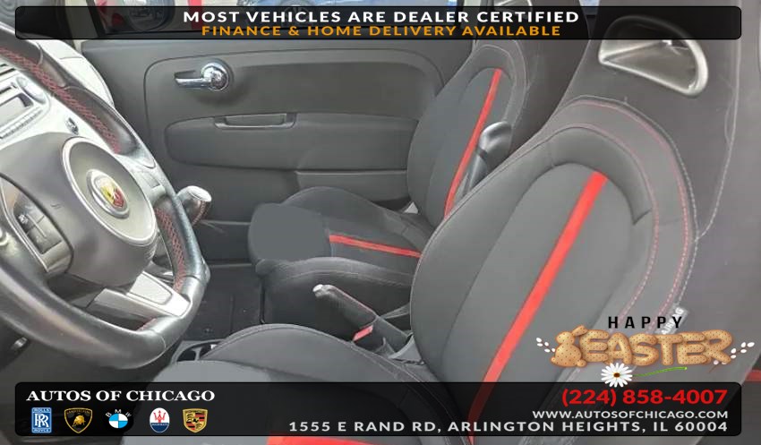 The 2013 FIAT 500 2dr HB Abarth is a distinctive and spirited compact car that beautifully merges Italian styling with sporty performance. Its clean Bianco (White) exterior is accented with eye-catching red mirror caps and a striking bodyside stripe, adding a touch of boldness to its classic silhouette. At the core of its dynamism lies a robust 1.4L 16-valve I4 Multi-Air turbo engine, paired with a spirited 5-speed manual transmission, offering an engaging driving experience that car enthusiasts will appreciate. Inside, the Abarth's Black Interior is designed to complement its exterior flair, enveloping passengers in a cabin that emphasizes both style and comfort. The premium sound system enhances every journey by delivering crystal-clear audio, while the convenience of Bluetooth connectivity and keyless entry ensures that a modern, user-friendly experience is always at your fingertips. The agility of the 16" x 6.5" aluminum wheels, along with its finely-tuned suspension, makes navigating urban environments a breeze, allowing for both ease of maneuverability and responsive handling. The 25X Customer Preferred Order Selection Package further enhances the Abarth's appeal, tailoring the vehicle to those who value performance and personalization. Whether seamlessly merging onto highways or darting through city streets, the FIAT 500 Abarth embodies a driving spirit that is as unique as its styling. This compact powerhouse brings a balance of efficiency and excitement, making it an ideal choice for those who crave an everyday car with both flair and function.