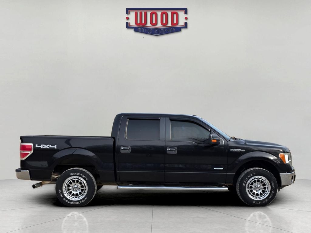 Clean Carfax. F-150 XLT, 4D SuperCrew, 3.5L V6, 6-Speed Automatic Electronic, 4WD, Tuxedo Black Metallic, Steel Gray w/Cloth Bucket Seats, 18' Chrome-Clad Aluminum Wheels, 4.2' LCD Productivity Screen in Instrument Cluster, 5' Chrome Running Boards, 6-Way Power Driver Seat, Auxiliary Transmission Oil Cooler, Chrome Door Handles w/Black Bezels, Chrome Exhaust Tip, Equipment Group 302A Luxury, Fully automatic headlights, Heated Power Side Mirrors, Illuminated entry, Leather-Wrapped Steering Wheel, Power Adjustable Pedals, Power windows, Power-Sliding Rear Window w/Defrost Privacy Tint, Radio: AM/FM Stereo/Clock/Single-CD, Rear-View Camera, Remote keyless entry, Reverse Sensing System, Security system, SelectShift Automatic Transmission, Self-Dimming Rear-View Mirror, SiriusXM Satellite Radio, Speed control, Steering wheel mounted audio controls, SYNC, SYNC MyFord, Trailer Brake Controller, Trailer Tow Package, Upgraded Radiator, XLT Chrome Package, XLT Convenience Package, XLT Plus Package. Tuxedo Black Metallic 2013 Ford F-150 XLT 4WD 6-Speed Automatic Electronic 3.5L V6 A solid name you can trust... Wood Motor. Recent Arrival! Odometer is 57139 miles below market average! Awards: * 2013 KBB.com Brand Image Awards