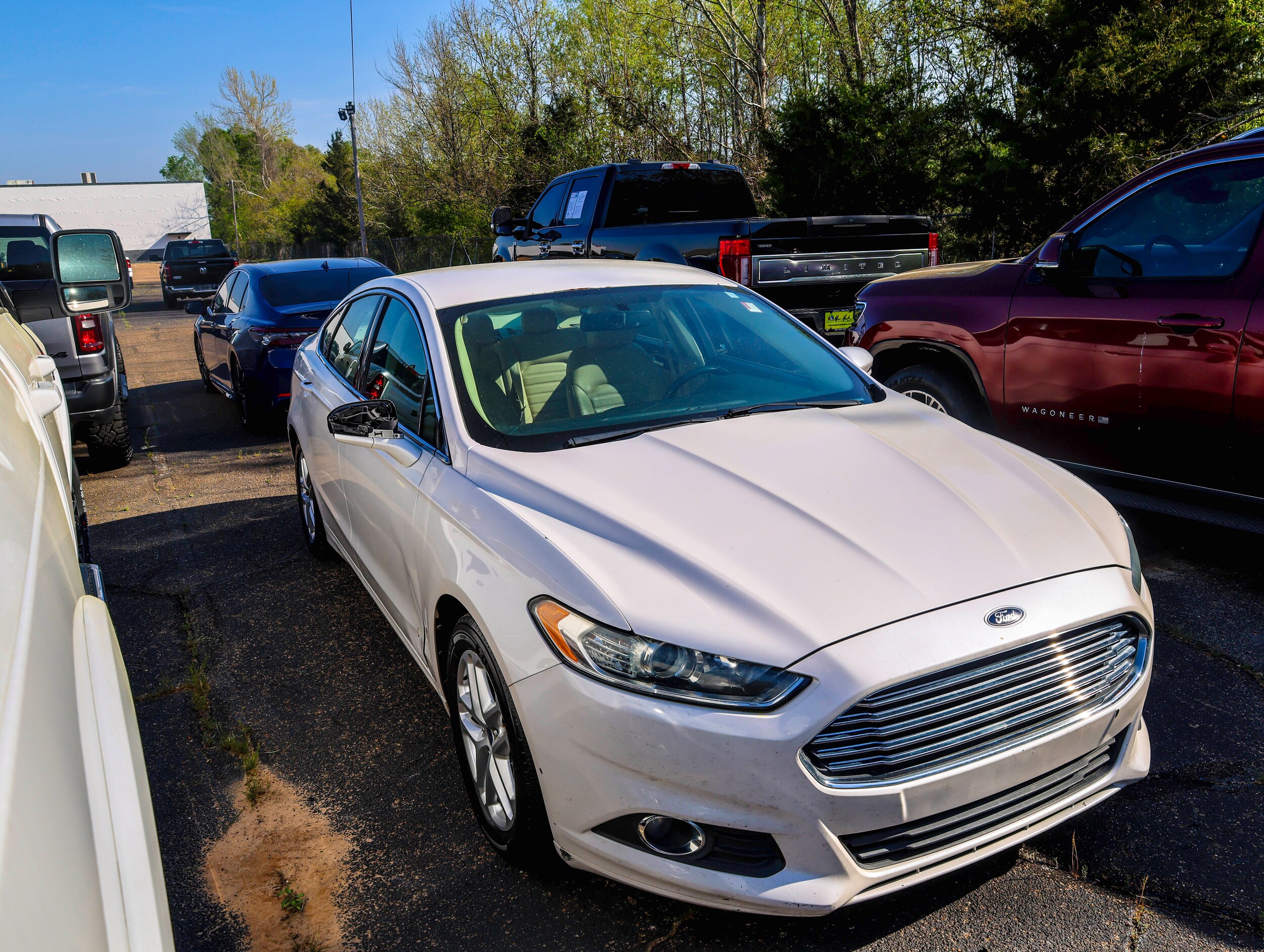 White Platinum Clearcoat Metallic 2013 Ford Fusion SE FWD 6-Speed Automatic EcoBoost 1.6L I4 GTDi DOHC Turbocharged VCT 6-Speed Automatic, Electrochromic Exterior Mirrors, Electrochromic Rear-View Mirror, Equipment Group 205A (DISC), Fog Lamps, Heated Leather Front Bucket Seats, Leather Wrapped Gearshift Knob, Leather-Wrapped Steering Wheel, Luxury Package. Looking for the perfect ride in Flowood, Brandon, Jackson, Ridgeland, Madison, Florence, Pelahatchie, Puckett, Philadelphia, Rankin County, Hinds County, Madison County, Nashoba County; Mac Haik Flowood Chrysler Dodge Jeep Ram in Flowood, MS has you covered! It doesn’t matter if you’re looking for a Ford, Chevy, GMC, Nissan, Toyota, Honda, Subaru, if you can think of it, we can find it! With over 17 different locations across the country we have a large selection of Ford F150, Chevy Silverado, GMC Sierra, Toyota Camry, Toyota Corolla and Honda Acc. With over 17 different locations across the country we have a large selection of new and used cars and trucks. Stop by and check out our brand new facility.