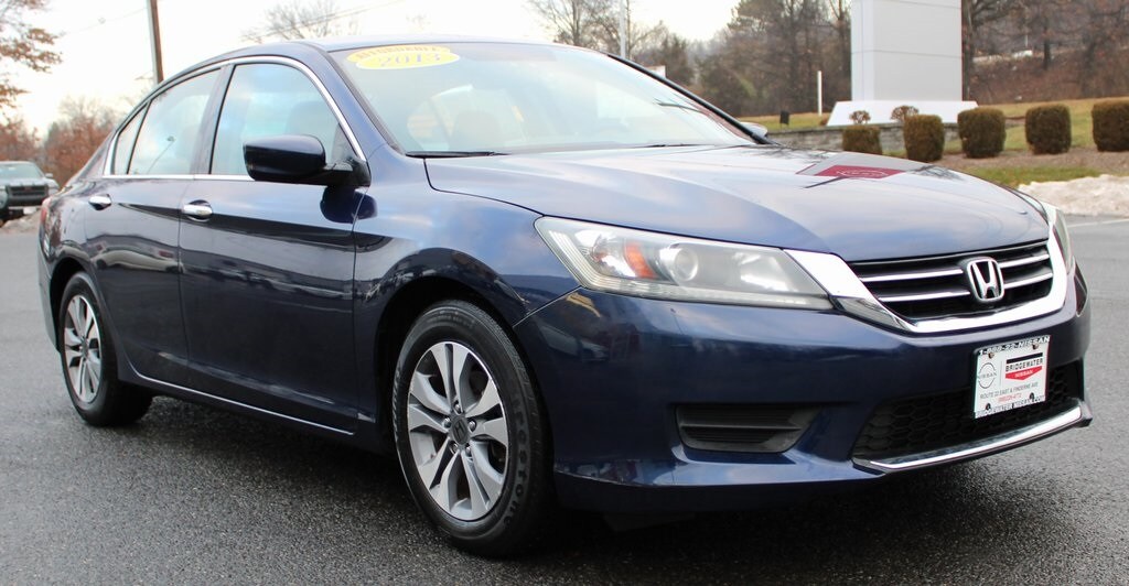 Check out this well-kept Obsidian Blue Pearl 2013 Honda Accord LX 2.4L I4 DOHC i-VTEC 16V CVT 27/36 City/Highway MPG Odometer is 36499 miles below market average! This Honda Accord LX FWD is well equipped and includes these features and benefits: Cloth interior, Power windows, Power door locks, clean interior, run and drive well; the perfect blend of daily driver and family hauler. No frills, just function. Some minor wear and tear; cosmetic scratches, dents and chips, which is typical for these vehicles due to age, but otherwise in good driving condition. Competitively priced for a car in this miles and condition. This vehicle is priced to sell! At Bridgewater Nissan, we strive to provide you with the best quality vehicles for the lowest possible price, and this Accord is no exception. Contact us at 908-722-3600. You will love the Bridgewater Nissan experience!