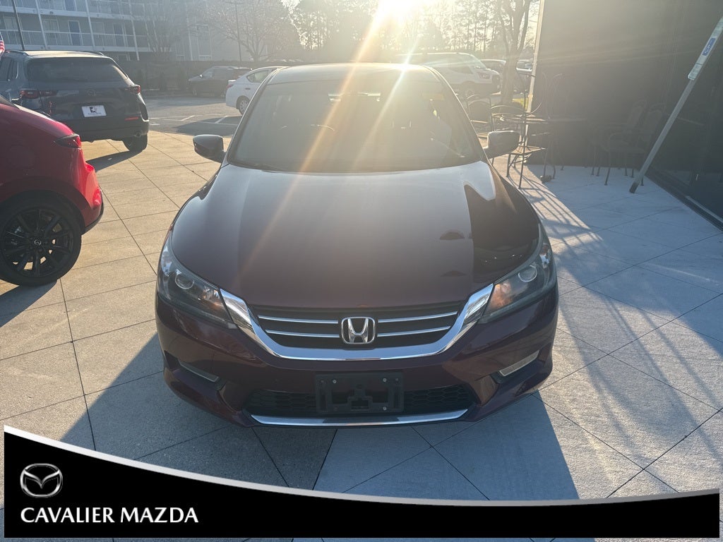 2013 Honda Accord Sport Basque Red Pearl II FWD CVT 2.4L I4 DOHC i-VTEC 16V alloy wheels, backup camera, Bluetooth, cruise control, tilt & telescoping steering wheel, steering wheel controls, 160-Watt AM/FM/CD audio system, 18 alloy wheels, 4 speakers, 4-wheel disc brakes, ABS brakes, air conditioning, and more. This vehicle is located at Cavalier Mazda in Chesapeake Virginia. Recent Arrival! Odometer is 71602 miles below the market average. The Honda Accord is the Labrador retriever of sedans. If you want a hassle-free car with a reputation for quality and an immediate familiarity, it’s hard to go wrong with the Accord. Coupe versions add an element of sportiness, especially when fitted with the strong V6 engine.