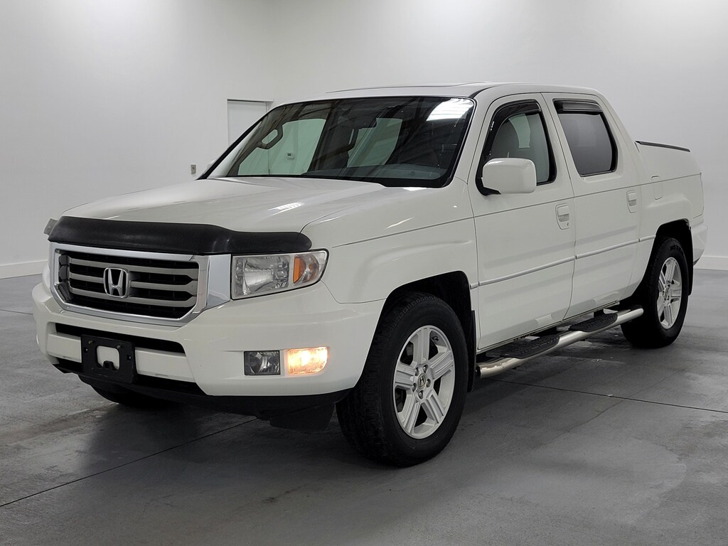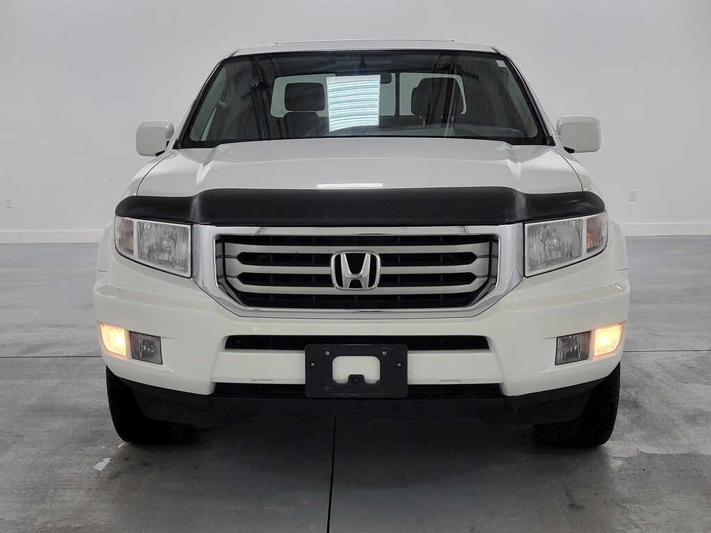 Clean CARFAX. Recent Arrival! With Some Available Options Like 18" x 7.5" Machine-Finished Silver Alloy Wheels, 4-Wheel Disc Brakes, 4.53 Axle Ratio, 7 Speakers, ABS brakes, Air Conditioning, Alloy wheels, AM/FM radio: XM, AM/FM/6-Disc In-Dash Audio System, Anti-whiplash front head restraints, Automatic temperature control, Brake assist, Bumpers: body-color, CD player, Compass, Driver door bin, Driver vanity mirror, Dual front impact airbags, Dual front side impact airbags, Electronic Stability Control, Exterior Parking Camera Rear, Four wheel independent suspension, Front anti-roll bar, Front Bucket Seats, Front Center Armrest w/Storage, Front dual zone A/C, Front fog lights, Front reading lights, Garage door transmitter: HomeLink, Heated door mirrors, Heated Front Bucket Seats, Heated front seats, Illuminated entry, Leather Seat Trim, Low tire pressure warning, Occupant sensing airbag, Outside temperature display, Overhead airbag, Overhead console, Panic alarm, Passenger door bin, Passenger vanity mirror, Power door mirrors, Power driver seat, Power moonroof, Power steering, Power windows, Rear anti-roll bar, Rear reading lights, Rear seat center armrest, Rear step bumper, Remote keyless entry, Security system, Speed control, Speed-sensing steering, Split folding rear seat, Steering wheel mounted audio controls, Tachometer, Tilt steering wheel, Traction control, Trip computer, Variably intermittent wipers, and XM Radio. White 2013 Honda Ridgeline RTL 4D Crew Cab 3.5L V6 SOHC VTEC 24V 15/21 City/Highway MPG 4WD 5-Speed Automatic.