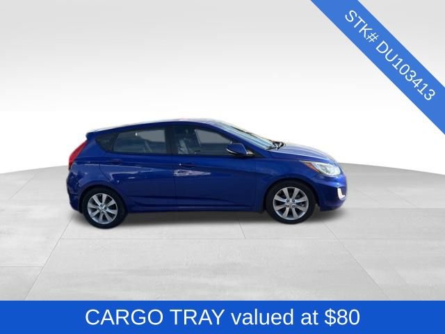 Black Cloth. 2013 Hyundai Accent Marathon Blue Pearl 4D Hatchback 6-Speed Automatic with Overdrive SE FWD 1.6L I4 DGI DOHC 16V. Odometer is 32866 miles below market average!