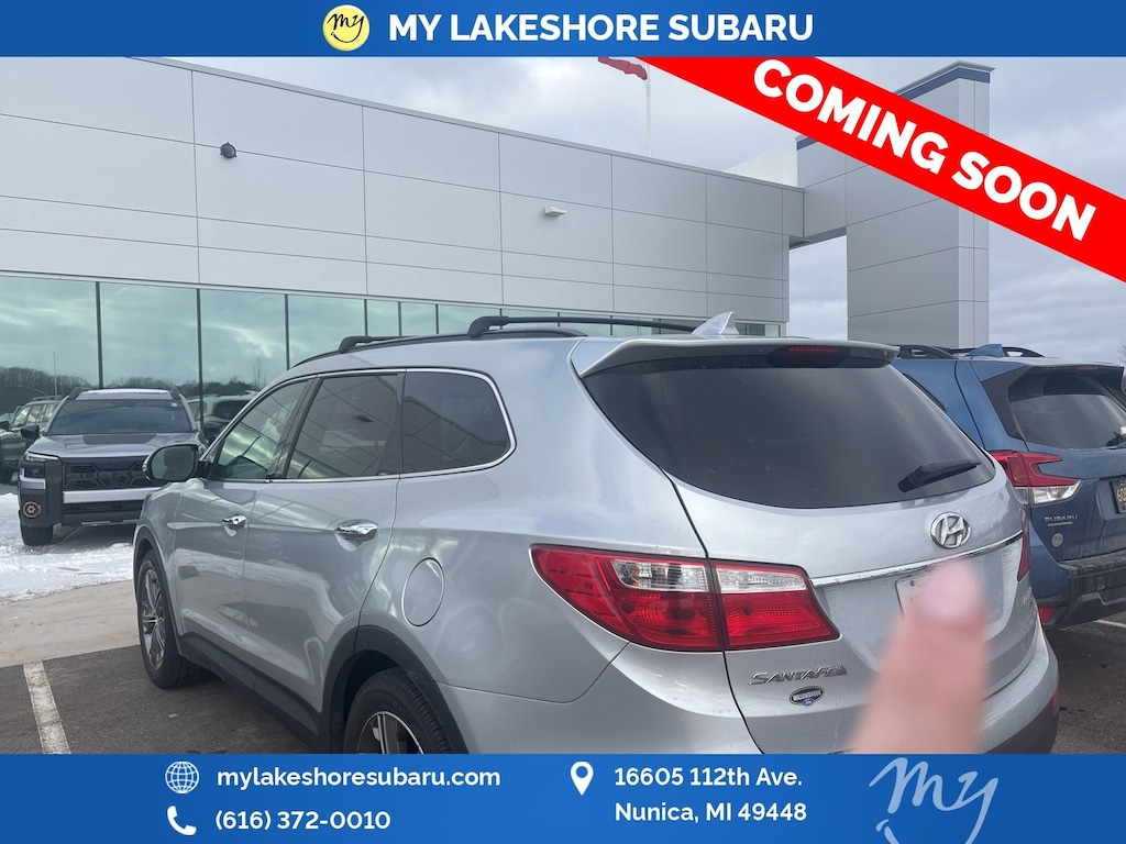 Santa Fe Limited, AWD, Circuit Silver, all wheel drive, backup camera, heated rear seats, heated steering wheel, leather heated power seats, panoramic moonroof, premium sound. Circuit Silver 2013 Hyundai Santa Fe Limited AWD 6-Speed Automatic with Shiftronic 3.3L V6 DGI DOHC 24V. My Lakeshore Subaru is your #1 choice in Michigan to get the best price on used vehicles and best value for your trade. The My Lakeshore Subaru team is ready to provide you with a world-class experience, ensuring that you find the perfect vehicle that fits all your needs. Every vehicle has been through a full safety inspection completed by certified technicians and fully detailed. We sell many makes and models, certified pre-owned Subarus and pre-owned vehicles with years from 2025-2024-2023-2022-2021-2020-2019-2018-2017-2016-2015-2014-2013-2012-2011-2010-2009-2008-2007 and all makes Audi, BMW, Chevrolet, Toyota, Volkswagen, Kia, Hyundai, Mazda, Mercedes, Dodge, Chrysler, Jeep, Ram, Lincoln, Honda, Subaru, and many models like Crosstrek, Outback, Forester, Accent, Legacy, WRX, BRZ, Solterra, and more. Take advantage of our VIP experience by calling 231-867-6957 to schedule a test drive. Read our customer reviews and view our entire selection of preowned vehicles at www.mylakeshoresubaru.com, or stop by today, located at 16605 112th Ave, Nunica, MI 49448. Recent Arrival! My Lakeshore Subaru is proud to service customer's saving you time & money on any Pre-owned vehicle!