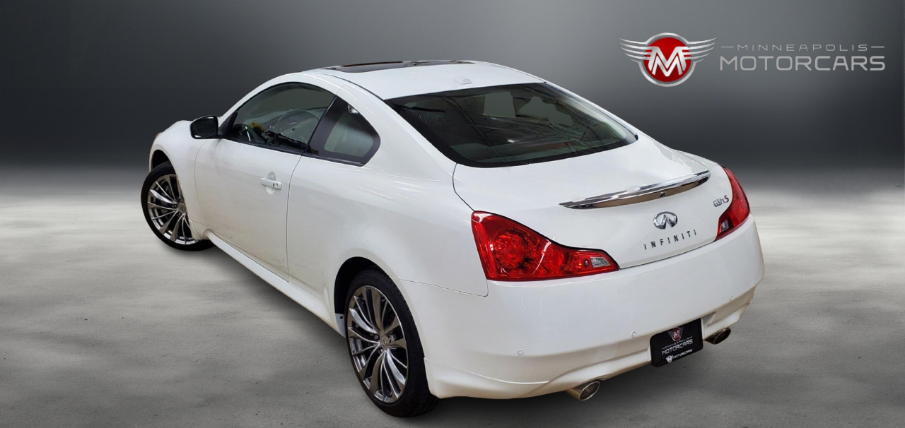 Arriving Soon. 2013 Infiniti G37X-S Coupe Premium. Carfax Certified and No Accidents. Moonlight White on Black Sport Seats. Navigation, Back up Camera, Heated Seats, Sunroof, BOSE Sound with Bluetooth/AUX, Smart Key. Recently Serviced. Enjoy this Well Maintained and Desirable G37X Coupe Sport. Indoor Showroom. Carfax report with every vehicle. We buy, sell, trade and offer financing. Affordable service warranty contracts available. Please schedule a showing for your convenience. By Appointment. Contact Sam at 612-707-2100. Small, Simple and Nice Cars. Enjoy your car buying experience again! Thank You for Visiting Minneapolis Motorcars.