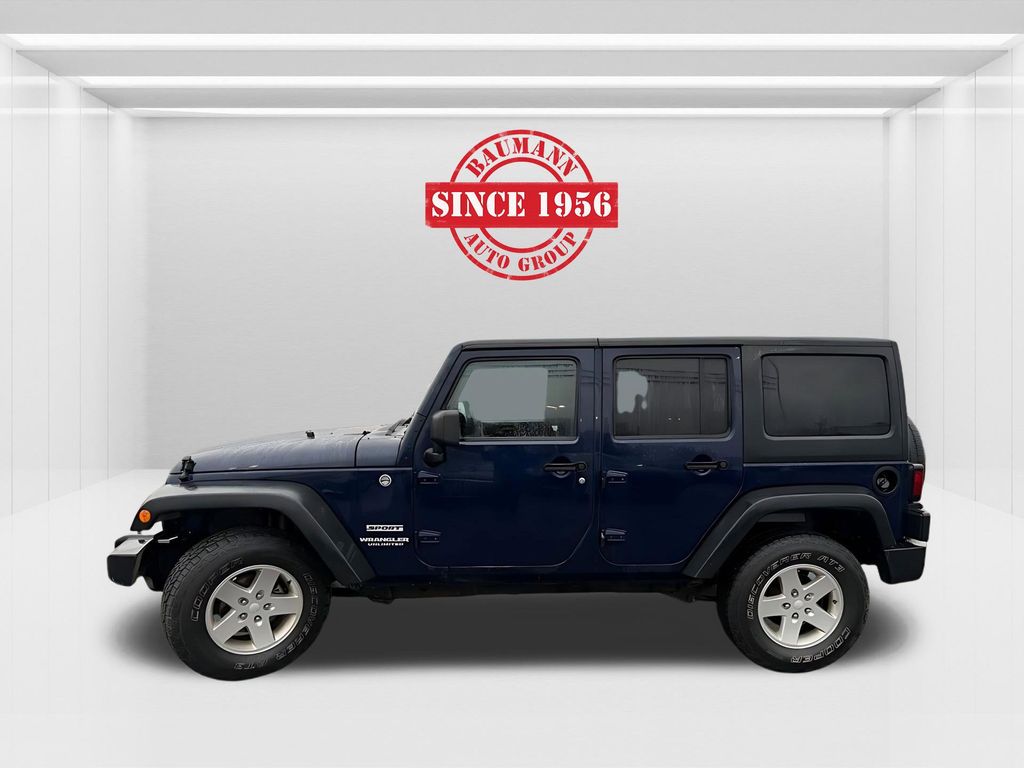 Recent Arrival! Carfax One-Owner. Clean Carfax. True Blue Pearlcoat 2013 Jeep Wrangler Unlimited Sport 4D Sport Utility 3.6L V6 24V VVT 6-Speed Manual 4WD. 1-Year SiriusXM Radio Service, 16" x 7.0" Luxury Styled Steel Wheels, 17" x 7.5" Aluminum Wheels, 3.21 Rear Axle Ratio, 4-Wheel Disc Brakes, 6 Speakers, ABS brakes, Air Conditioning, Alpine Premium Audio System, AM/FM radio, Auto-Dimming Mirror with Reading Lamp, Black 3-Piece Hard Top, Brake assist, CD player, Chrome/Leather Wrapped Shift Knob, Class II Receiver Hitch, Cloth Bucket Seats, Compass, Connectivity Group, Deep Tint Sunscreen Windows, Driver door bin, Driver vanity mirror, Dual front impact airbags, Electronic Stability Control, Freedom Panel Storage Bag, Front 1-Touch Down Power Windows, Front anti-roll bar, Front Bucket Seats, Front Center Armrest with Storage, Front fog lights, Integrated roll-over protection and more.