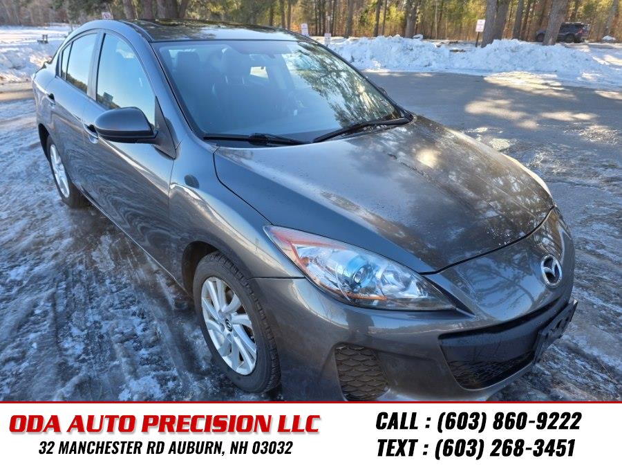 This 2013 Mazda Mazda3 4dr Sdn Auto i Grand Touring is available for sale in Auburn, New Hampshire. It features a blue SKYACTIV-G I4 engine and a gray exterior with a black leather interior. The vehicle is in stock and available at ODA Auto Precision LLC.