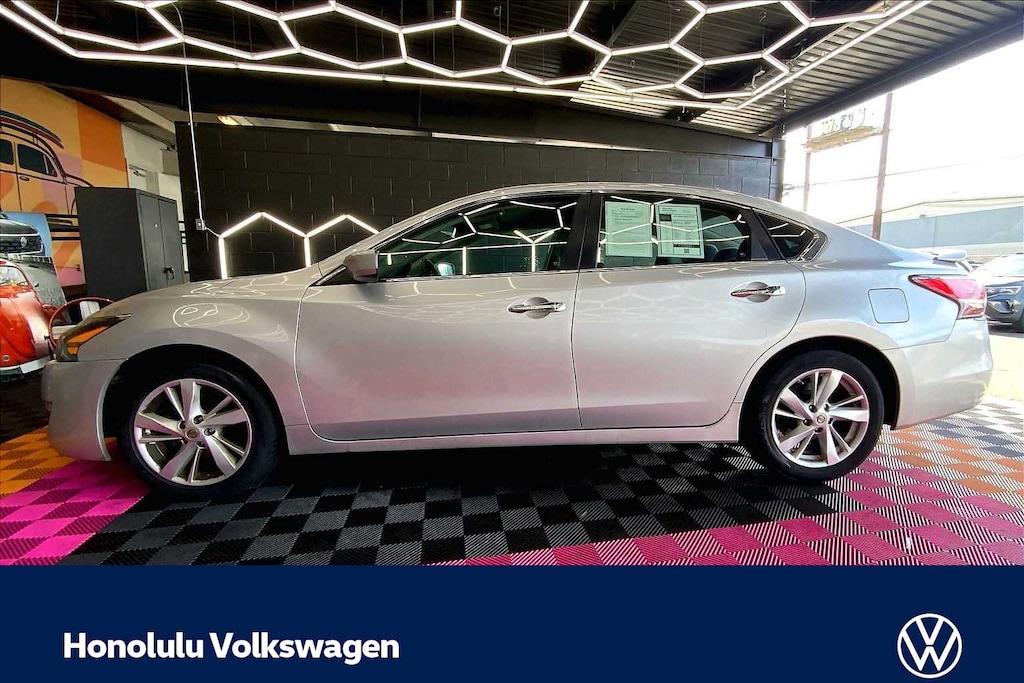 Brilliant Silver Metallic 2013 Nissan RA 2.5. The vehicle is a 2013 KRA 10 Best New Sedans Under $25,000. The vehicle is a 2013 KBB. The vehicle is a 2013 RA. The vehicle is a 2013 Nissan Altima 2.5 SV. The vehicle is a 4D Sedan FWD CVT with Xtronic 2.5L I4 DOHC 16V CVT with Xtronic, ABS brakes, Alloy wheels, Electronic Stability Control, Front dual zone A/C, Illuminated entry, Low tire pressure warning, Remote keyless entry, Traction control. Odometer is 40093 miles below market average! 27/38 City/Highway MPG. Honolulu Volkswagen is a trusted Volkswagen dealership in Honolulu, Hawaii, proudly serving drivers across Oahu with a full lineup of new Volkswagen models, certified pre-owned Volkswagens, and quality used vehicles.