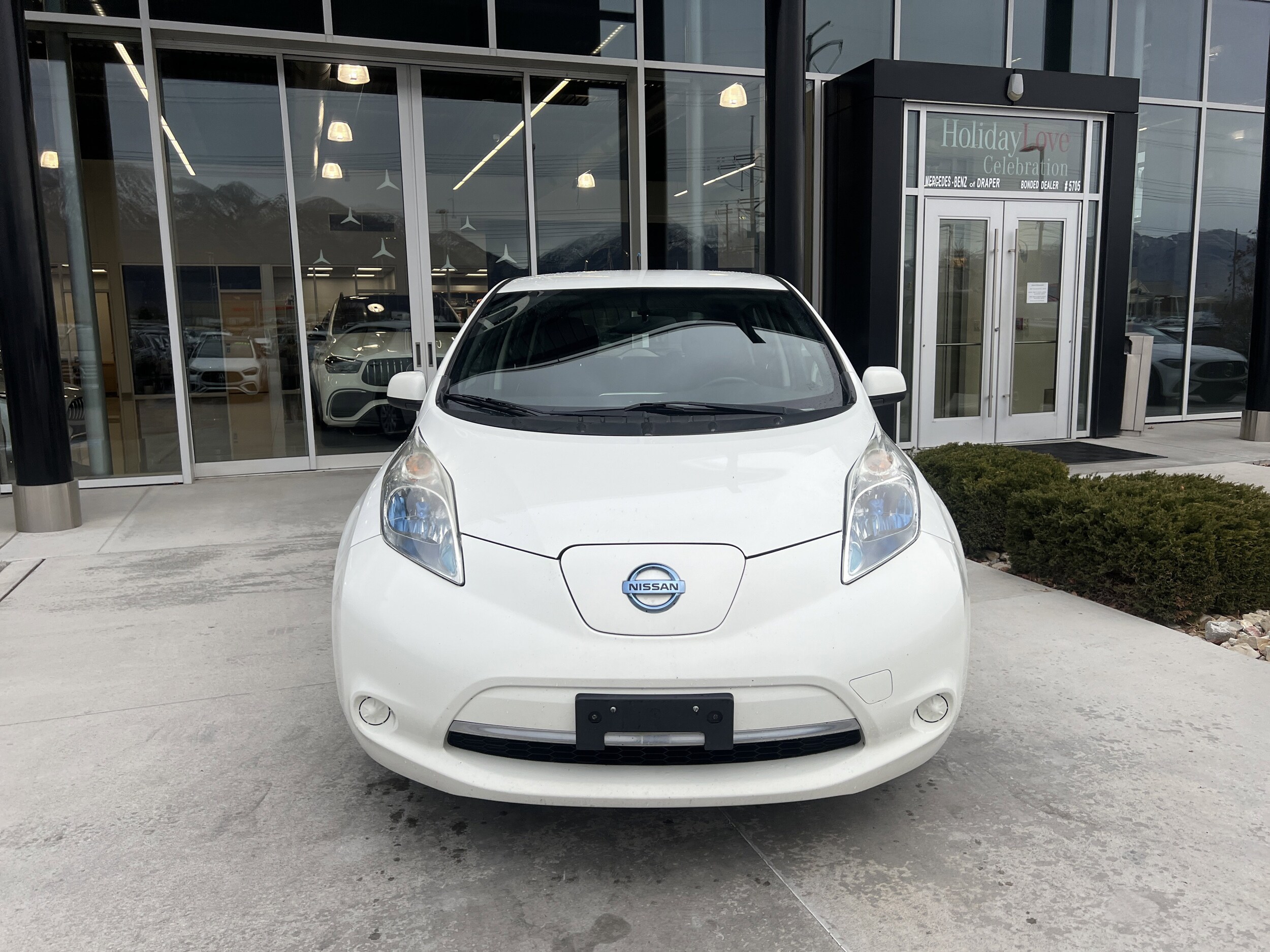 Mercedes-Benz of Draper proudly offers this 2013 Glacier White Nissan Leaf S FWD. It is well equipped and includes these features and benefits. Between our welcoming sales team, friendly service center employees and our knowledgeable parts advisors, we have over 250 years of combined Mercedes-Benz experience! All our vehicles go through an extensive reconditioning process which includes all up to date scheduled services by our Mercedes factory trained technicians as well as passing a 155+ point inspection, setting us apart from the other dealerships and car lots. We invite you to visit us at Mercedes-Benz of Draper and welcome you to our MB family.
