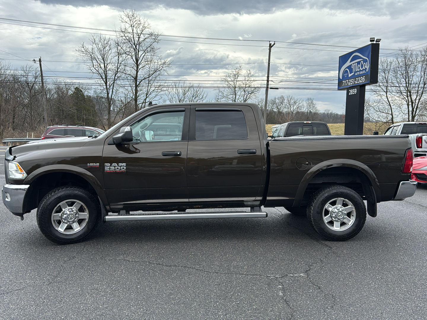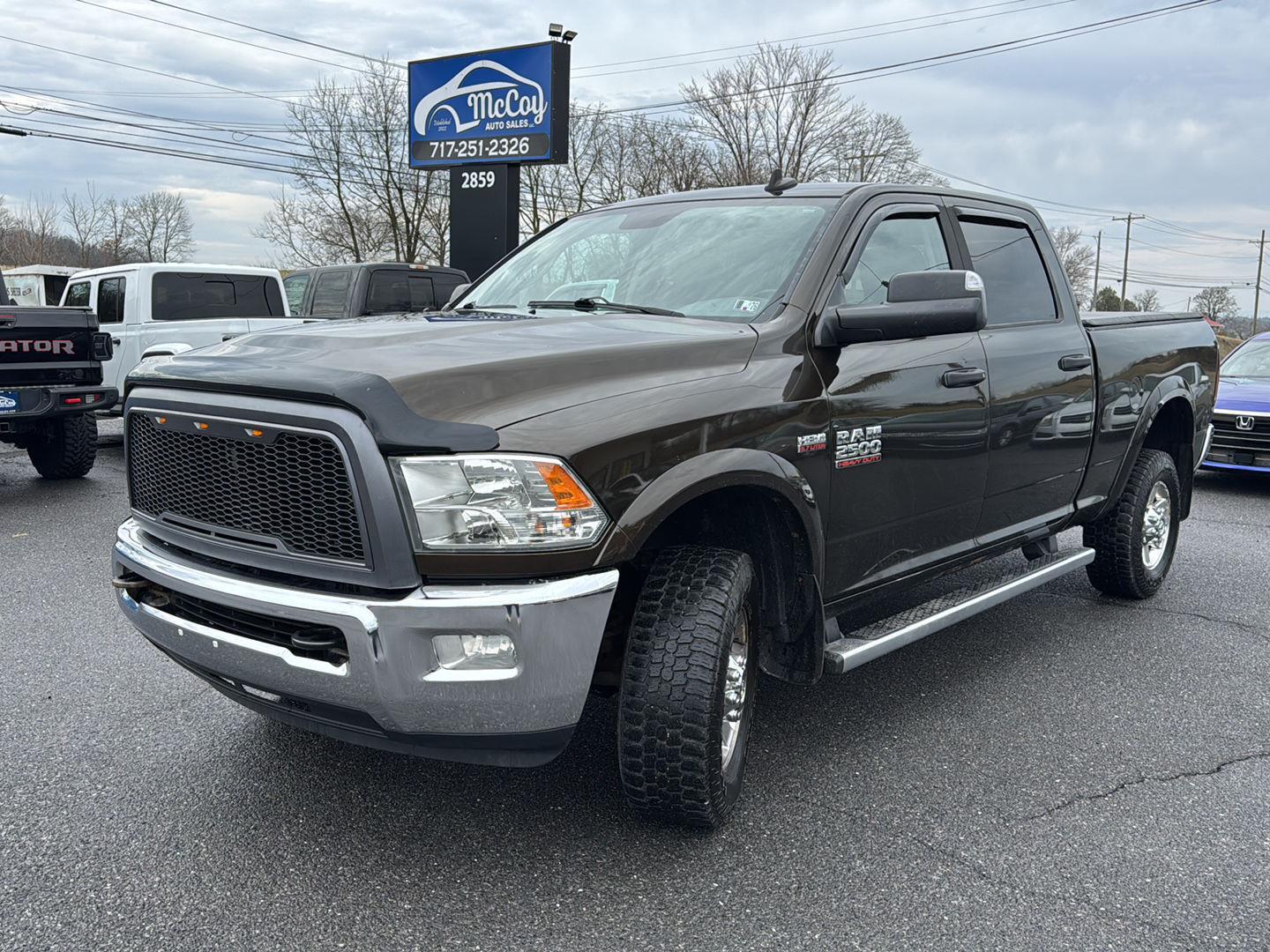 Thanks for checking out McCoy Auto Sales of Chambersburg, Pa. This Black Gold Pearlcoat 2013 Ram 2500 Outdoorsman with 50-state emissions, 5.7L SMPI V8 HEMI engine w/variable valve timing, 6-speed automatic transmission w/OD, 26T Outdoorsman customer preferred order selection package, 4.10 axle ratio, 17" x 8.0" polished forged aluminum wheels, LT265/70R17E on/off-road OWL tires, monotone paint, black/diesel gray, cloth premium bench seat, monotone Outdoorsman, HD snow plow prep group, 180-amp alternator, chrome tubular side steps, black power trailer tow mirrors, ParkView rear back-up camera and no accidents! would be a great addition to your garage! McCoy Auto Sales provides at no cost a 6 month or 6,000 mile powertrain warranty for peace of mind after this major purchase. At McCoy Auto Sales you'll find a great selection of quality hand-picked vehicles to choose from at affordable prices! We price our cars based on the market and sell them quickly. We are a no hassle, no games dealership and even though we feel our prices are competitive, we are here to sell them so if we're close don't hesitate to make a reasonable offer. We offer multiple financing options, take trades and will do our best to make sure buying a vehicle is as simple as it should be!