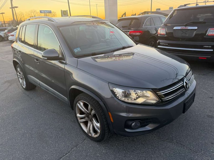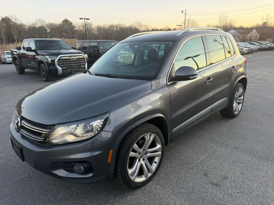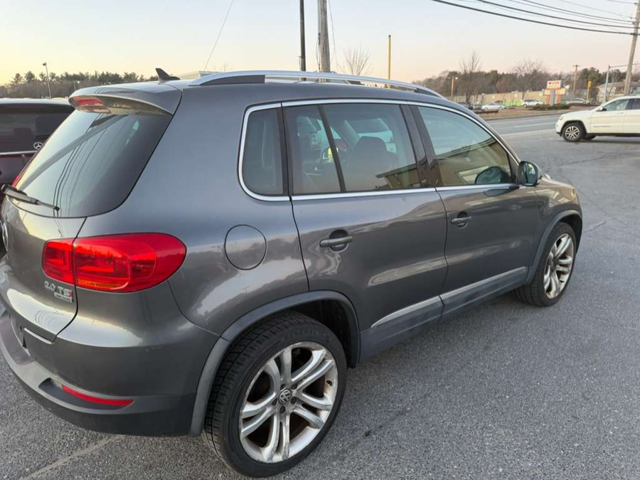 This 2013 Volkswagen Tiguan 4WD 4dr Auto SEL is available for sale in Raynham, Massachusetts. It features a Pepper Gray Metallic exterior with a Black leather interior and is equipped with a 2.0L TSI turbocharged I4 engine and a 6-speed automatic transmission with OD. The vehicle has 78,937 miles and offers a comfortable and feature-rich driving experience.