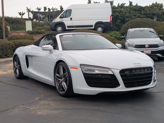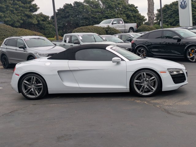 This 2014 Audi R8 V8 is proudly offered by We'll Buy Your Car Riverside Soak up the sun and have some fun in this outstanding Audi R8 convertible. Outstanding craftsmanship and artisanal refinements abound with this Audi R8 V8. No matter the varying terrain or weather conditions, this all-wheel drive vehicle will help you reach your destination safely and securely in a well-appointed cabin with many features found on cars twice the price. It's not a misprint. And the odometer isn't broken. This is a very low mileage Audi R8. A rare find these days. More information about the 2014 Audi R8: Audi's R8 coupe and Spyder are exotic cars without the fuss; they have the interior comfort and appointments of a luxury coupe, along with an impressive list of features, yet they're nearly as quick as (and far, far less expensive than) the Lamborghini Gallardo models with which they're closely related. They're also distinctive and unmistakable in their own right, with an advanced all-wheel-drive system that maximizes handling and performance in all conditions. Considering the Lamborghini heritage and all the practical positives, the Audi looks like quite the deal. Interesting features of this model are inexpensive compared to the competition, Exotic-car looks, blistering performance, exclusivity, luxury-car appointments, and impressive display of Audi's advanced engineering.