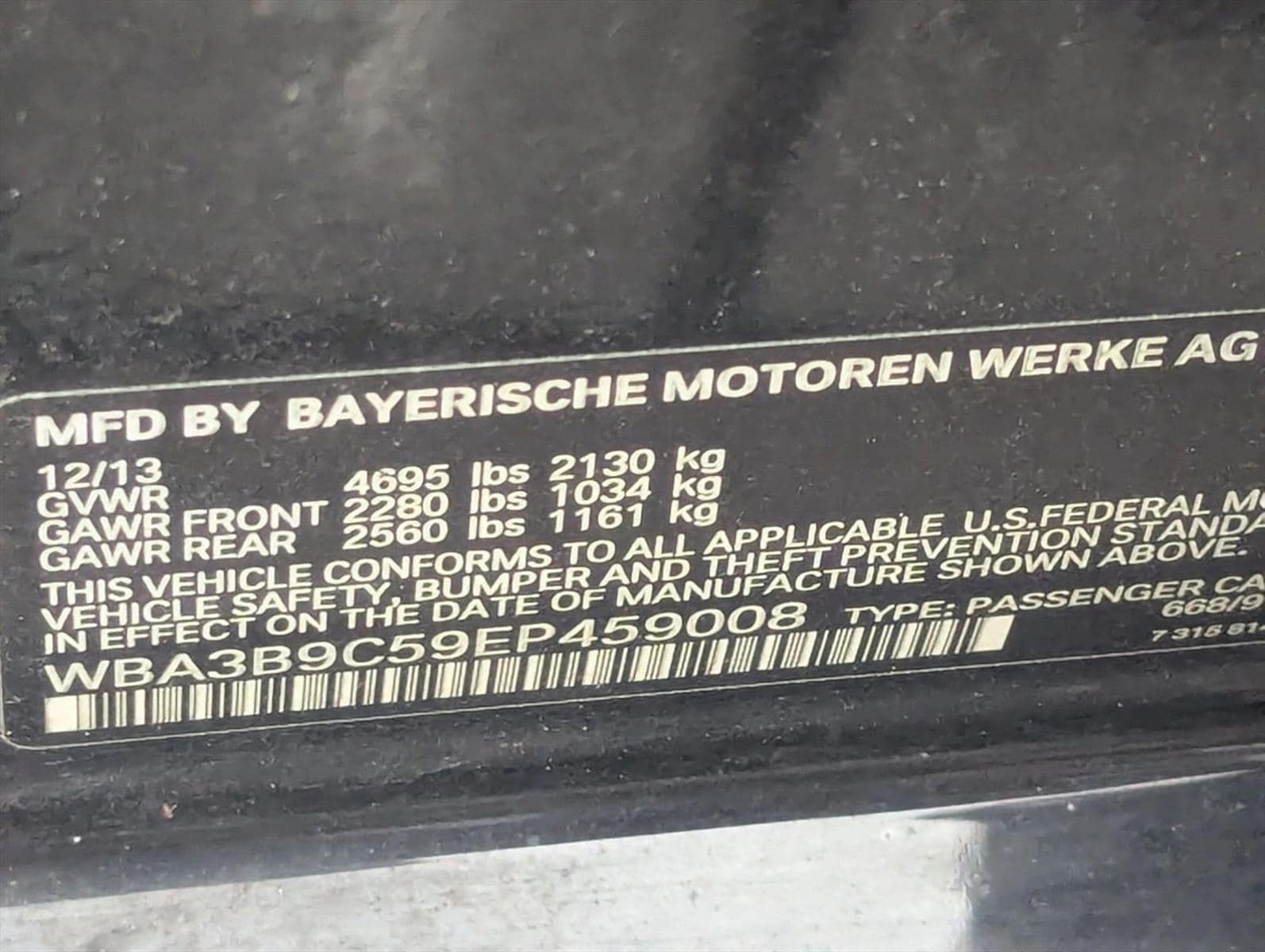 VIN: WBA3B9C59EP459008