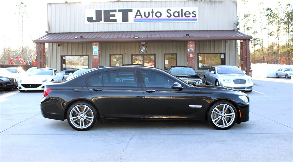Command the road with our 2014 BMW 7 Series 750Li Sedan in Jet Black. Powered by a Twin TurboCharged 4.4 Liter V8 offering 445hp matched with a responsive 8 Speed Automatic transmission. Our Rear Wheel Drive sedan sprints to 60mph in 4.7 seconds while attaining nearly 25mpg on the highway. You'll be enthused by its Driving Dynamics control that allows this athletic machine to sweep around tight corners with confidence while offering a ride at the leading edge of comfort, showing off 19-inch wheels and power soft-closing doors. Prepare to experience an adrenaline rush upon entering the elegant 750Li interior with power heated/ventilated leather front seats, rich wood accents and a fantastic sunroof. You'll maintain a connection to your digital world with our iDrive multimedia interface, Bluetooth®, and a hard-drive navigation system with real-time traffic while listening to the superb 16-speaker surround-sound audio system. It's not just about power and prestige, though...BMW leads the world in innovative safety features that fill this 7 Series to keep you out of harm's way, from ABS to airbags and accident avoidance features designed for the way you drive. Make a bold statement with this 750Li sedan! Save this Page and Call for Availability. We Know You Will Enjoy Your Jet Auto Sales Test Drive Towards Ownership!