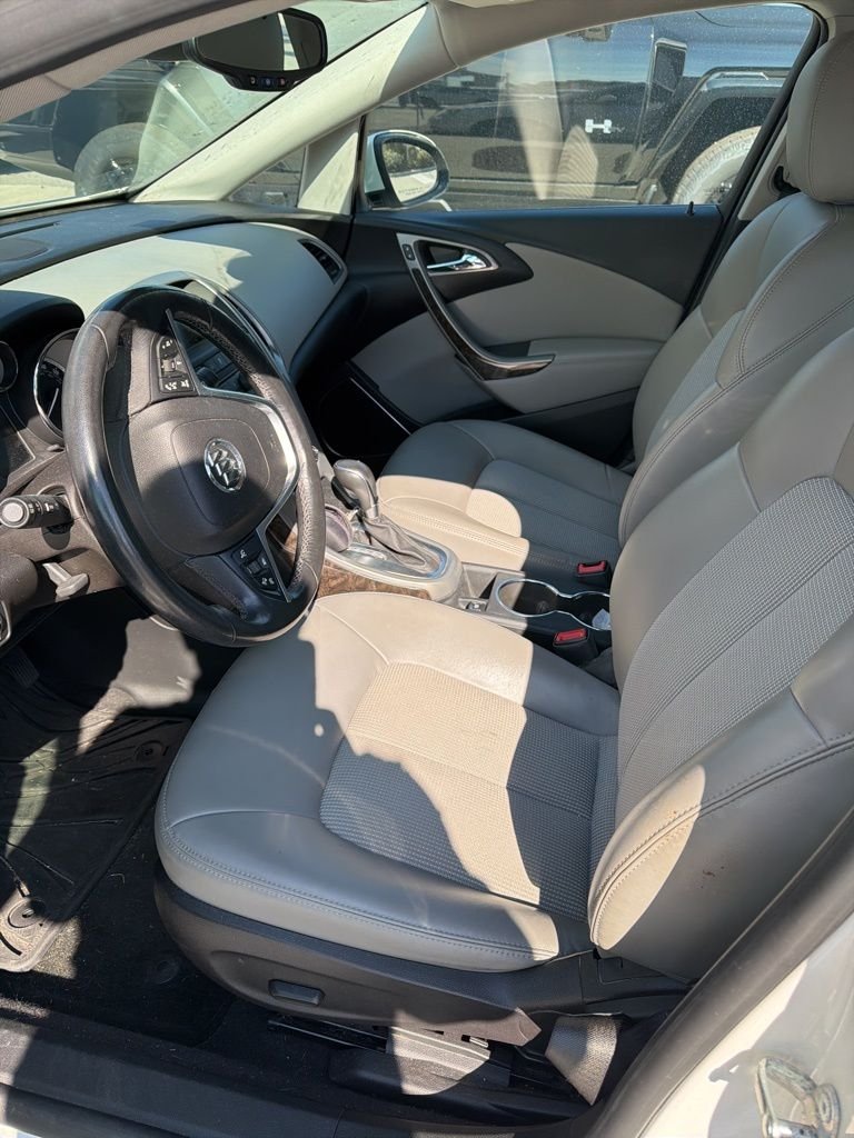 Discover the exceptional value and premium features of this 2014 Buick Verano Convenience Group. With its striking White Diamond Tricoat exterior, this well-appointed sedan offers a refined driving experience and a wealth of advanced technologies to enhance your daily commute. This Verano is equipped with a robust ECOTEC 2.4L I4 engine paired with a 6-Speed Automatic transmission, delivering an impressive 21 city / 32 highway MPG. Enjoy the convenience of features like the Driver 6-Way Power Seat Adjuster, Universal Home Remote, Lane Departure Warning System, and Rear Cross-Traffic Alert. The Ultrasonic Rear Parking Assist and Side Blind Zone Alert provide added peace of mind, while the Auto-Dimming Inside Rear-View Mirror and Outside Heated Power-Adjustable Mirrors enhance visibility and comfort. Step inside the well-appointed cabin, where premium Ribbon Fabric Seat Trim and Heated Front Bucket Seats await. The IntelliLink premium audio system with SiriusXM Satellite Radio keeps you entertained, while the Dual-Zone Automatic Climate Control maintains the perfect temperature. The Rear Window Defroster, Power Windows, and Remote Keyless Entry add to the Verano's user-friendly features. Safety is a top priority, with a comprehensive suite of advanced airbags. The 4-Wheel Disc Brakes with ABS, Electronic Stability Control, and Traction Control work together to provide confident handling and responsive braking. This 2014 Buick Verano Convenience Group represents an exceptional value at just $11,000. Experience the refined driving dynamics, premium amenities, and advanced safety features that make this sedan a standout in its class.