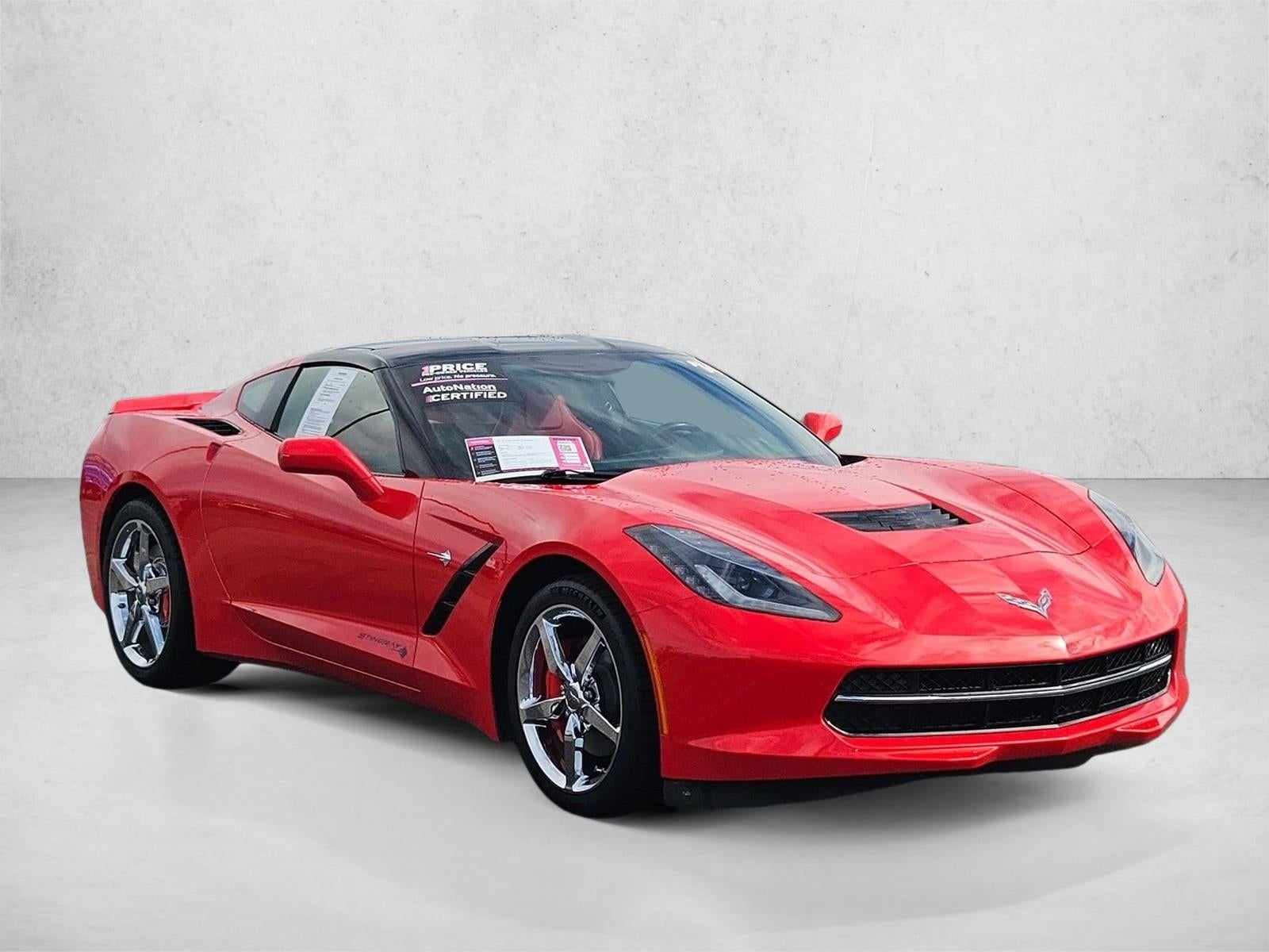 This vehicle includes a Money-Back Guarantee* and passed our precise inspection process. Best of all the price you see is the price you pay. No haggling. No back and forth. No pressure. And this price is so good it is guaranteed. *Money-Back Guarantee is valid for 5 days or 250 miles, whichever comes first. Subject to certain terms and conditions. See store for details. Some restrictions apply. CARFAX shows that this is a one-owner vehicle -- no wonder it's in such great condition. Today's luxury vehicle is not just about opulence. It's about a perfect balance of performance, comfort and attention to detail. This 2014 Chevrolet Corvette Stingray 1LT is the perfect example of the modern luxury. This 2014 Chevrolet Corvette Stingray has such low mileage it has been parked more than driven. Marked by excellent quality and features with unmistakable refined leather interior that added value and class to the Chevrolet Corvette Stingray 1LT. How often was the oil changed? Were important service intervals taken care of? You'll have the records on this vehicles to know for sure. This Chevrolet Corvette Stingray is beautiful and the interior is clean with virtually no flaws. More information about the 2014 Chevrolet Corvette Stingray: The Chevrolet Corvette has always been a performance bargain, and the latest iteration is no exception. With a base MSRP of $51,000, it offers world-class performance and handling at half the price of sports cars from Europe. Even more impressive, the 2014 Corvette delivers amazing fuel economy for a 455-horsepower car, with an EPA-estimated 29 mpg on the highway. Strengths of this model include World-class performance, incredible value, improved interior, convertible option, unmistakable design, impressive fuel economy, and advanced handling dynamics.