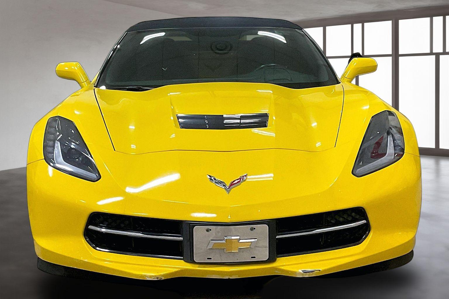 The 2014 Chevrolet Corvette Stingray 2dr Conv w/2LT in the striking Velocity Yellow Tintcoat is a captivating blend of performance and style. Beneath the sleek exterior lies a formidable 6.2L V8 engine, delivering a powerful driving experience that is sure to thrill enthusiasts and casual drivers alike. Complementing this power is the precision of a 6-speed paddle shift transmission with automatic mode, allowing seamless transitions between gears for a responsive and exhilarating ride. Inside, the Corvette Stingray offers an inviting Jet Black leather interior, exuding luxury and sophistication. The 2LT preferred equipment group enhances your driving experience with features like auto climate control and advanced navigation, ensuring comfort and convenience at your fingertips. Additionally, the premium sound system and Bluetooth connectivity elevate entertainment and communication on the road, while the telematics system provides added safety and vehicle diagnostics. The exterior of the Stingray is further accentuated by stylish 5-spoke chrome aluminum wheels, offering a polished contrast to the vibrant Velocity Yellow Tintcoat. Keyless entry enhances the convenience, providing easy access to your ride. The performance exhaust system not only improves the vehicle’s aesthetics but also amplifies the engine's roar, announcing your arrival with authority. All these features come together to create a top-tier convertible sports car that embodies the essence of the Chevrolet Corvette legacy while delivering an unmatched driving experience.