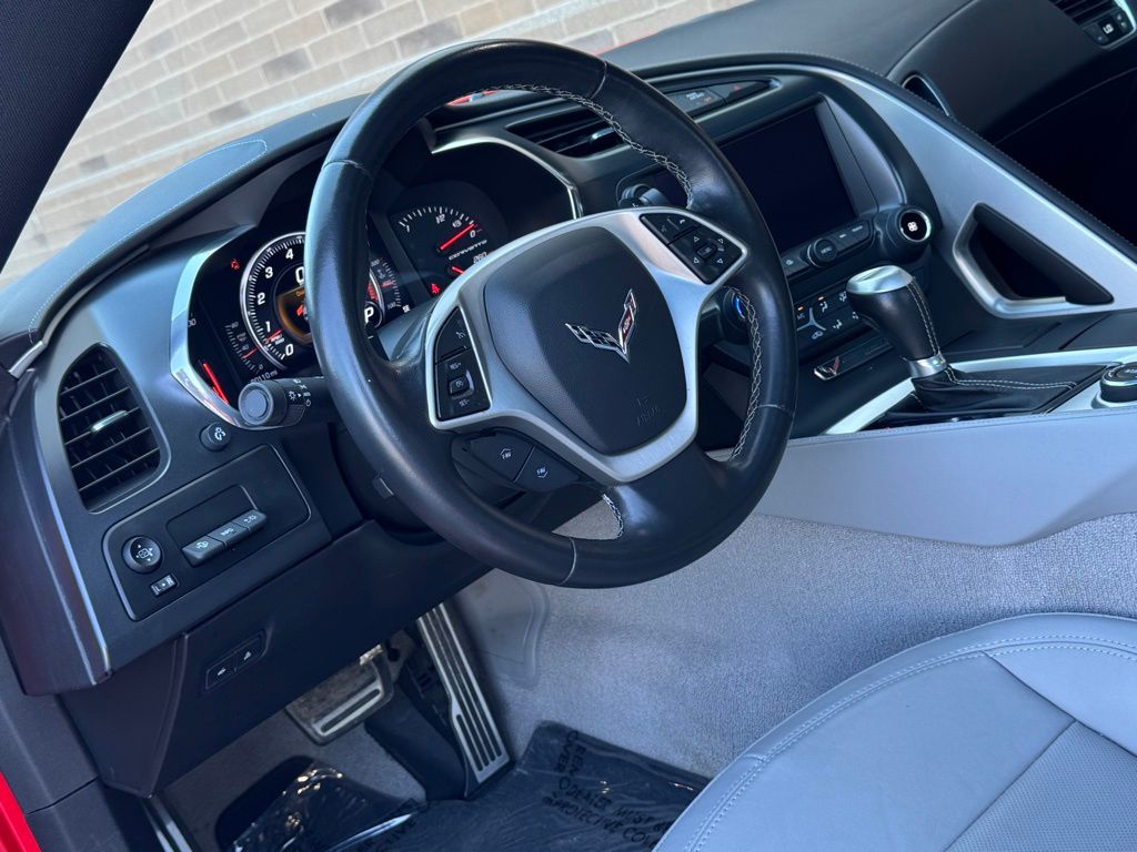 Torch Red 2014 Chevrolet Corvette Stingray RWD 6.2L V8 Memory Package, Preferred Equipment Group 2LT (2LT Interior Trim, Auto-Dimming Inside Frameless Rearview Mirror, Body-Color Outside Heated Power-Adjustable Mirrors, Cargo Net, Head-Up Display, Heated & Vented Driver & Passenger Seats, Luggage Shade, Power Lumbar/Bolster Seat Adjusters, Radio: Chevrolet MyLink AM/FM Stereo, Theft Deterrent System, and Universal Home Remote), 1-Piece Removable Transparent Roof Panel, 18" x 8.5" Fr & 19" x 10" Rr 5-Spoke Wheels, 2.56 Limited Slip Rear Axle Ratio, 4-Wheel Disc Brakes, 8-Way Driver & Passenger Seat Adjusters, 9 Speakers, ABS brakes, Air Conditioning, Alloy wheels, AM/FM radio: SiriusXM, Automatic temperature control, Bose Premium 9-Speaker Audio System Feature, Bumpers: body-color, Compass, Delay-off headlights, Driver door bin, Driver vanity mirror, Dual front impact airbags, Dual front side impact airbags, Electronic Stability Control, Emergency communication system: OnStar Directions & Connections, Exterior Parking Camera Rear, Four wheel independent suspension, Front anti-roll bar, Front Bucket Seats, Front Center Armrest, Front dual zone A/C, Front License Plate Bracket, Front reading lights, Fully automatic headlights, GT Bucket Seats, Heated door mirrors, High-Intensity Discharge Headlights, Illuminated entry, Leather Shift Knob, Leather steering wheel, Low tire pressure warning, Mulan Perforated Leather Seating Surfaces, Occupant sensing airbag, Outside temperature display, Painted Body-Color Carbon Fiber Removable Roof Panel, Panic alarm, Passenger door bin, Passenger vanity mirror, Power door mirrors, Power driver seat, Power passenger seat, Power steering, Power windows, Premium audio system: Chevrolet MyLink, Radio data system, Rear anti-roll bar, Rear window defroster, Remote keyless entry, Remote Vehicle Starter System, SiriusXM Satellite Radio, Speed control, Speed-sensing steering, Spoiler, Sport steering wheel, Steering wheel mounted audio controls, Tachometer, Telescoping steering wheel, Tilt steering wheel, Traction control, Trip computer, Variably intermittent wipers, and Voltmeter.