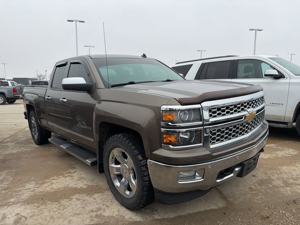 Up to any task, our 2014 Chevrolet Silverado 1500 Double Cab LTZ 4X4 is decked out in handsome Brownstone Metallic. Fueled by a 5.3 Liter V8 delivering 355hp tethered to a 6 Speed Automatic transmission for amazing towing or hauling capabilities. This Four Wheel Drive truck offers an exceptional fuel economy of nearly 23mpg on the highway, plus a suspension that eases you down the road in comfort. At the same time, the rear setup is tough enough to keep up with your demanding life. The commanding appearance of this Silverado Crew Cab LTZ with 20-inch alloy wheels improves any landscape. Step inside our LTZ cabin, which features an exclusive dash design with wood and metallic accents, and heated and cooled leather front power seats with driver memory, making you feel like the king of the road. Height-adjustable pedals are convenient. With MyLink, you'll stay connected and entertained as you cruise in this stellar machine. This no-nonsense truck will ensure it fulfills your work and play needs. Get the job done right with the security, performance, and comfort that only the Silverado 1500 LTZ delivers.