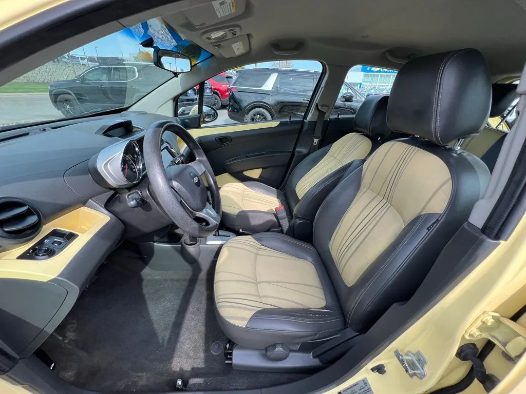 Used 2014 Chevrolet Spark 1LT for sale in Omaha, NE. Looking for a vibrant and efficient hatchback that stands out from the crowd? This 2014 Chevrolet Spark 1LT offers a unique blend of style, practicality, and affordability. Wrapped in a cheerful Lemonade exterior, this used vehicle exudes personality and fun, making it an ideal choice for city drivers or anyone seeking a compact car that doesn’t compromise on flair. With its efficient 1.2-liter four-cylinder engine paired with a smooth CVT automatic transmission, this Spark delivers impressive fuel economy, achieving up to 30 mpg in the city and an impressive 39 mpg on the highway. Its front-wheel-drive layout ensures confident handling, while the well-maintained condition and mileage of just over 82,000 miles make it a reliable option for daily commuting or weekend adventures alike. Inside, the cheerful yellow interior with matching yellow trim creates a lively and inviting atmosphere, reflecting the car’s playful exterior. Designed to maximize space and comfort within its compact dimensions, the Spark 1LT offers practical features and a user-friendly driving experience. Whether navigating crowded urban streets or cruising along open highways, this vehicle combines efficiency with a distinctive look. The 2014 Chevrolet Spark stands out as a smart choice for budget-conscious drivers who want a reliable, stylish, and economical car that turns heads everywhere it goes. Don’t miss your chance to own this eye-catching hatchback that proves small can be mighty.